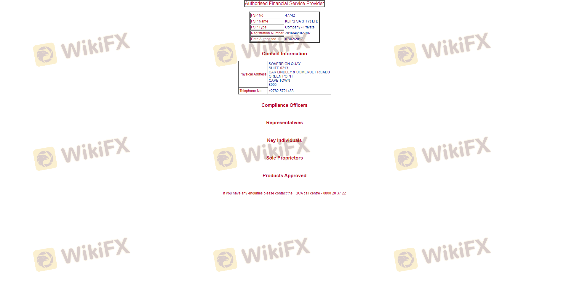 | FSCA | 49937 | Afrika Selatan | Tidak valid |