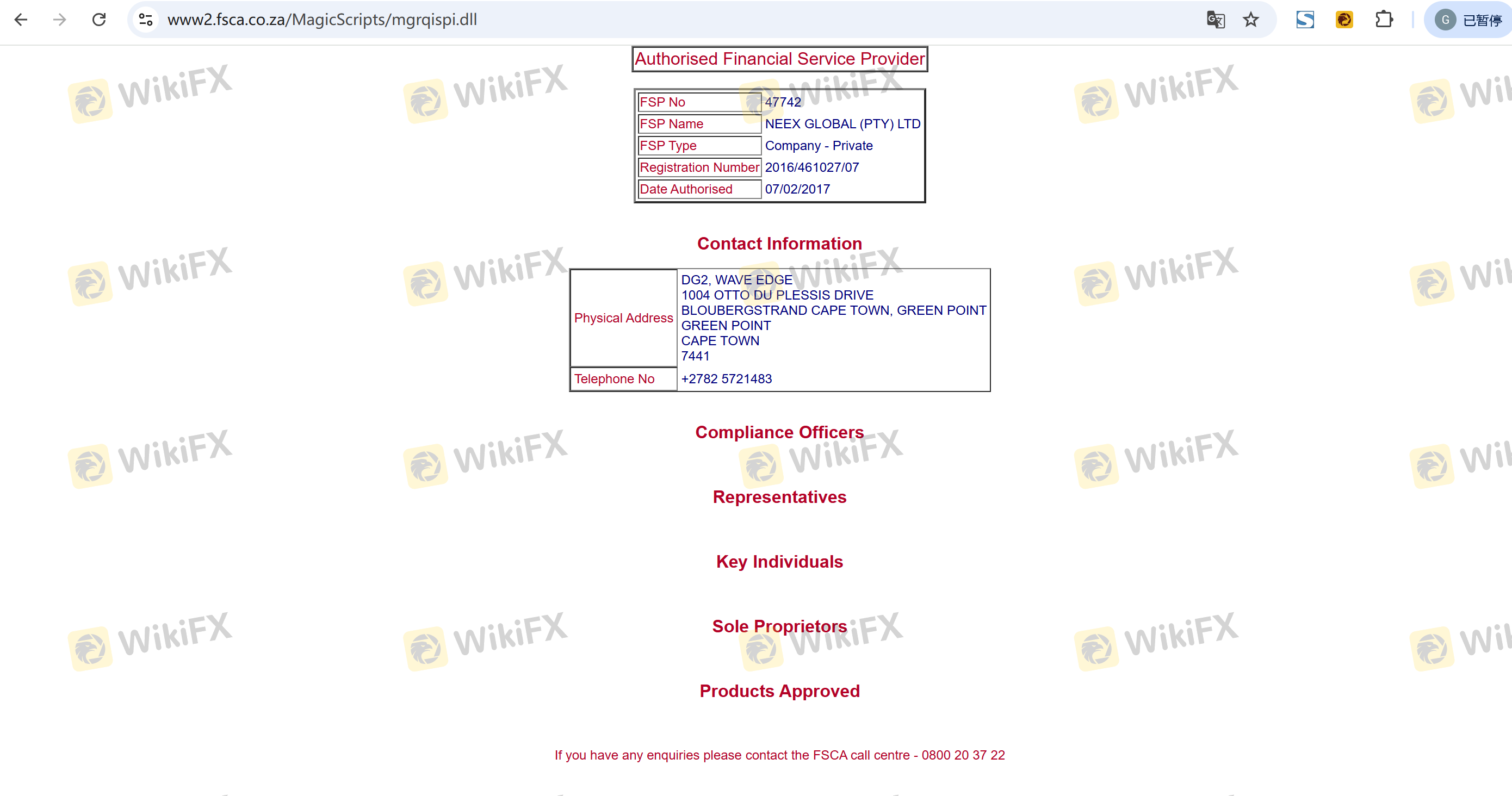 Status regulasi broker adalah faktor kritis dalam menentukan legitimasinya. Neex mengklaim diatur oleh beberapa otoritas keuangan, termasuk Australian Securities and Investments Commission (ASIC) dan Financial Sector Conduct Authority (FSCA) di Afrika Selatan. Namun, pemeriksaan lebih mendalam mengungkap ketidaksesuaian dalam klaim ini.