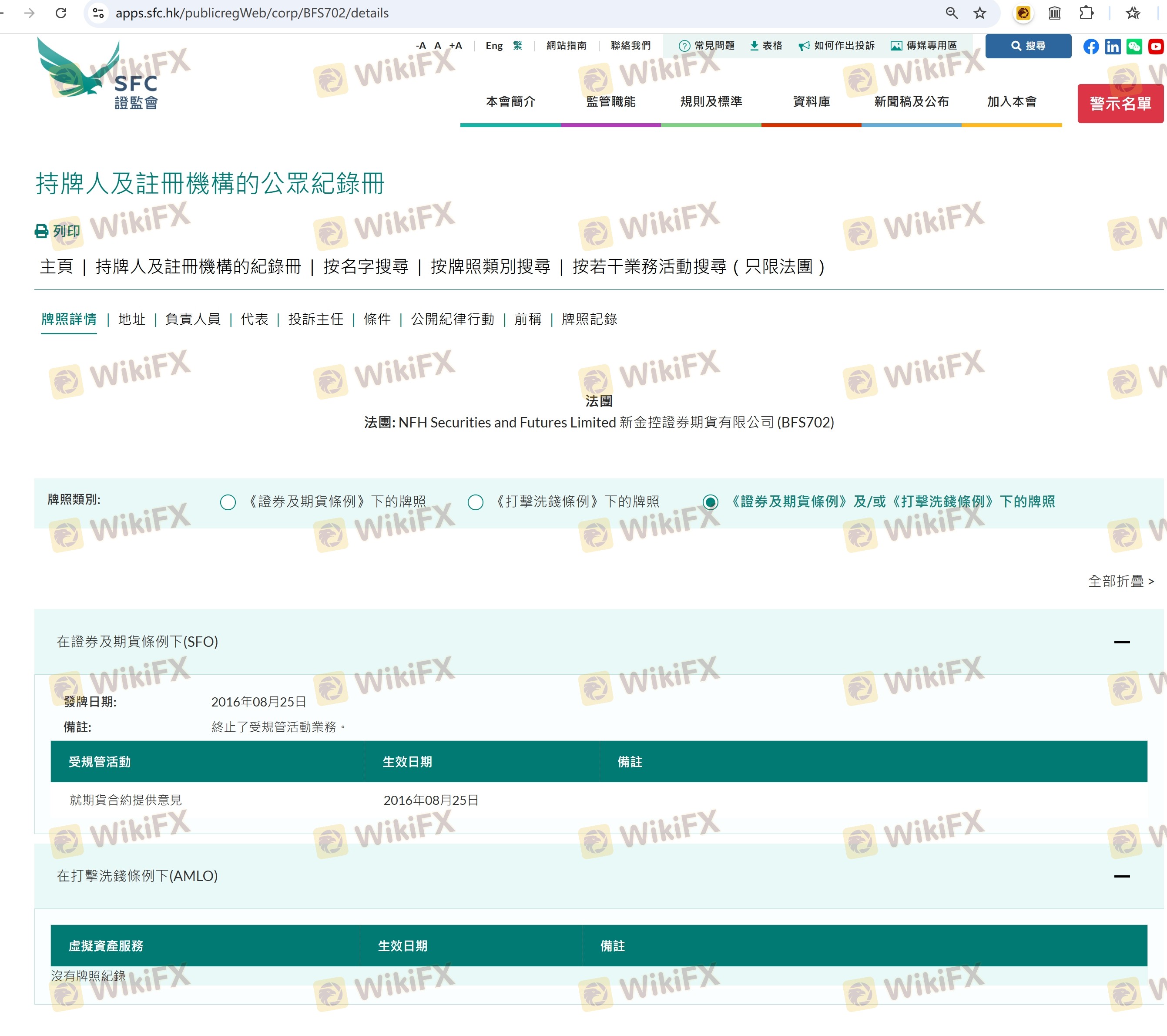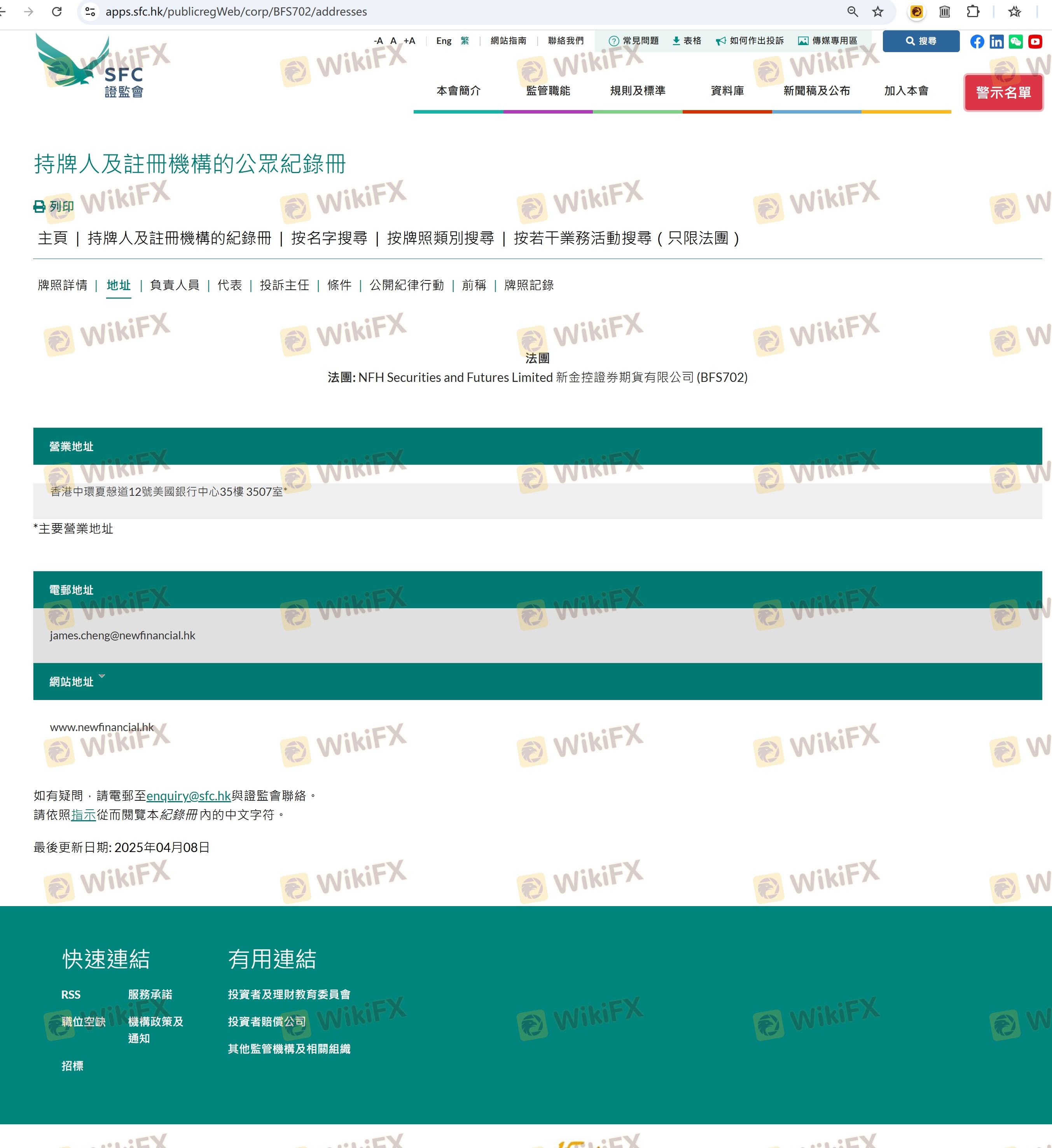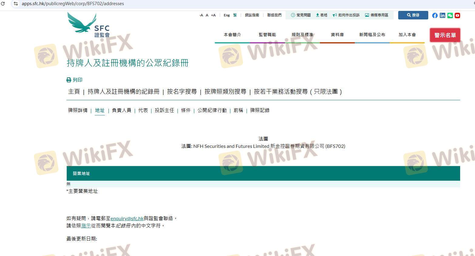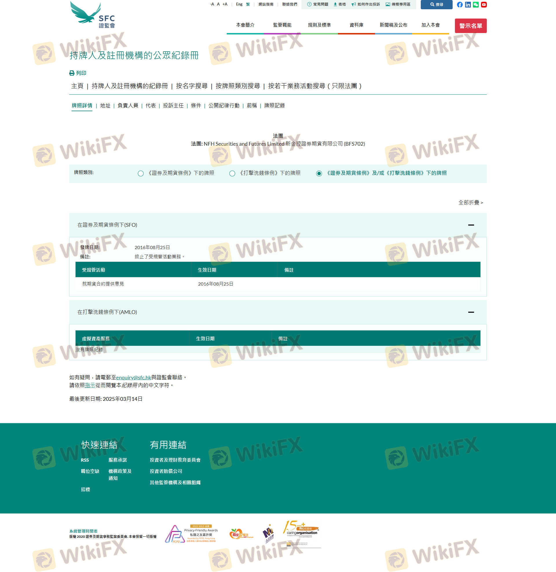 Mengenai legitimasi broker forex NFH, ia menyediakan Hong Kong SFC, dan (Kami juga melakukan investigasi lapangan terkait aspek keamanan.).
