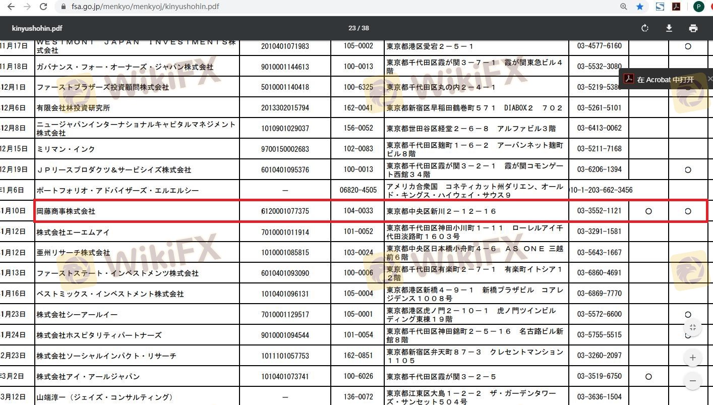 Mengenai legitimasi broker forex Okato, ia menyediakan Jepang FSA, dan (Kami juga melakukan investigasi lapangan terkait aspek keamanan.).