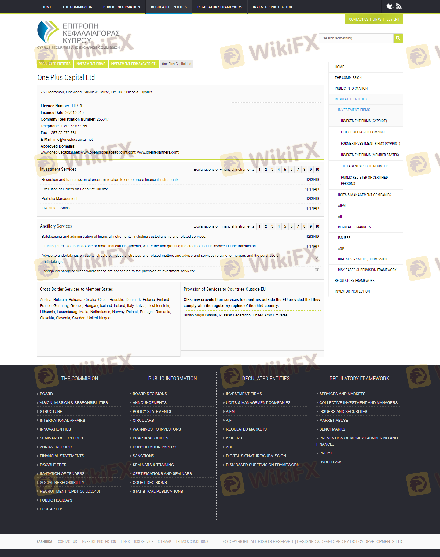 Mengenai legitimasi broker forex One Plus Capital, ia menyediakan Siprus CYSEC, dan (Kami juga melakukan investigasi lapangan terkait aspek keamanan.).