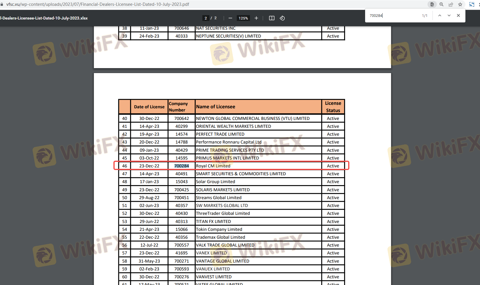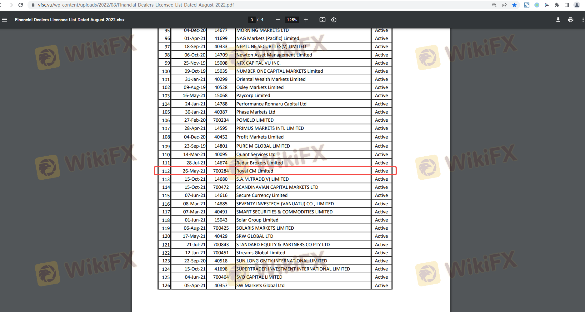 Mengenai legitimasi broker forex ONE ROYAL, ia menyediakan Australia ASIC, Siprus CYSEC, Vanuatu VFSC, dan (Kami juga melakukan investigasi lapangan terkait aspek keamanan.).