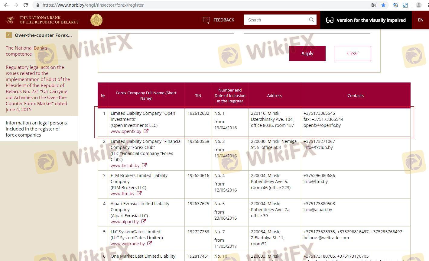 Mengenai legitimasi broker forex OpenFX, ia menyediakan Belarus NBRB, dan (Kami juga melakukan investigasi lapangan terkait aspek keamanan.).