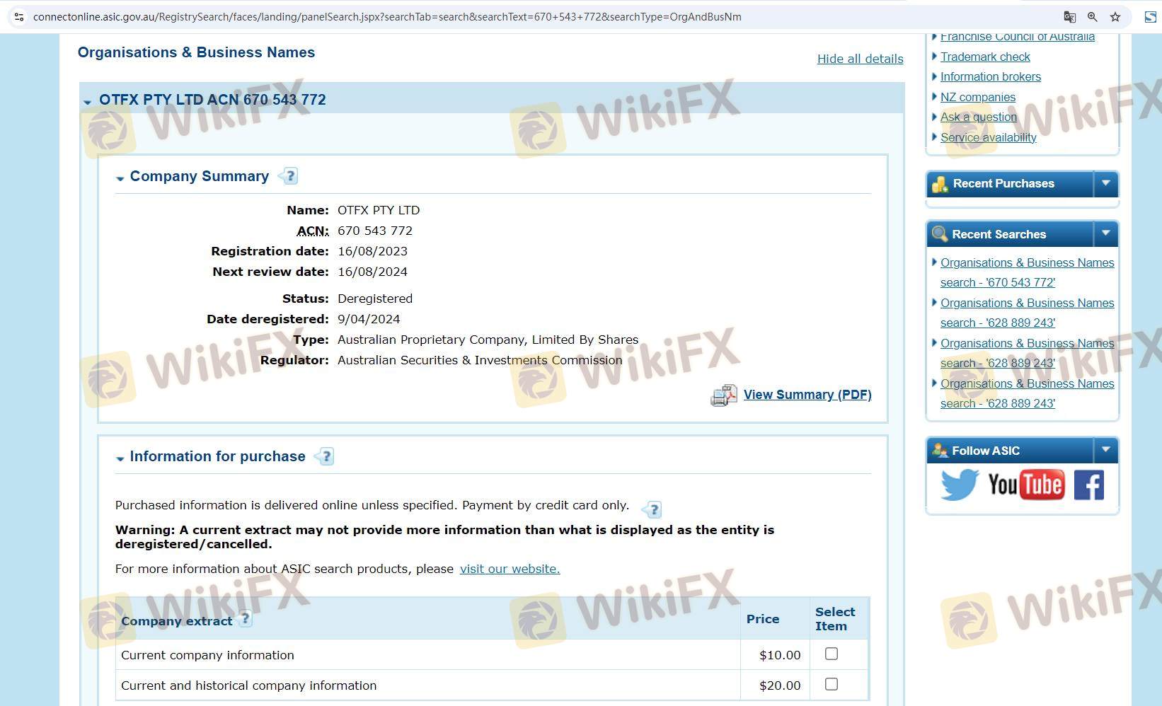 Mengenai legitimasi broker forex OTFX, ia menyediakan Australia ASIC, Australia ASIC, dan (Kami juga melakukan investigasi lapangan terkait aspek keamanan.).