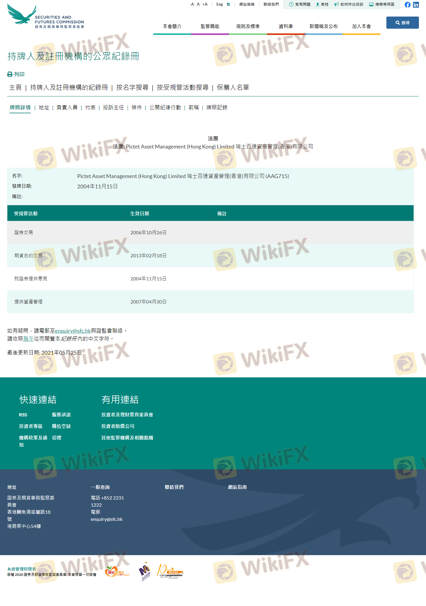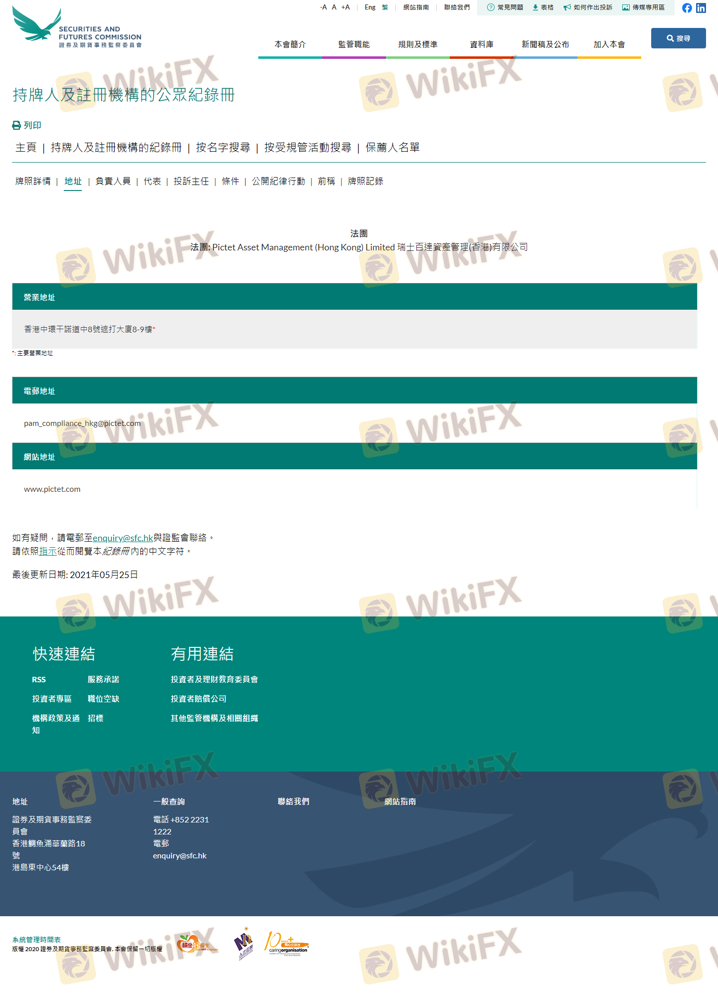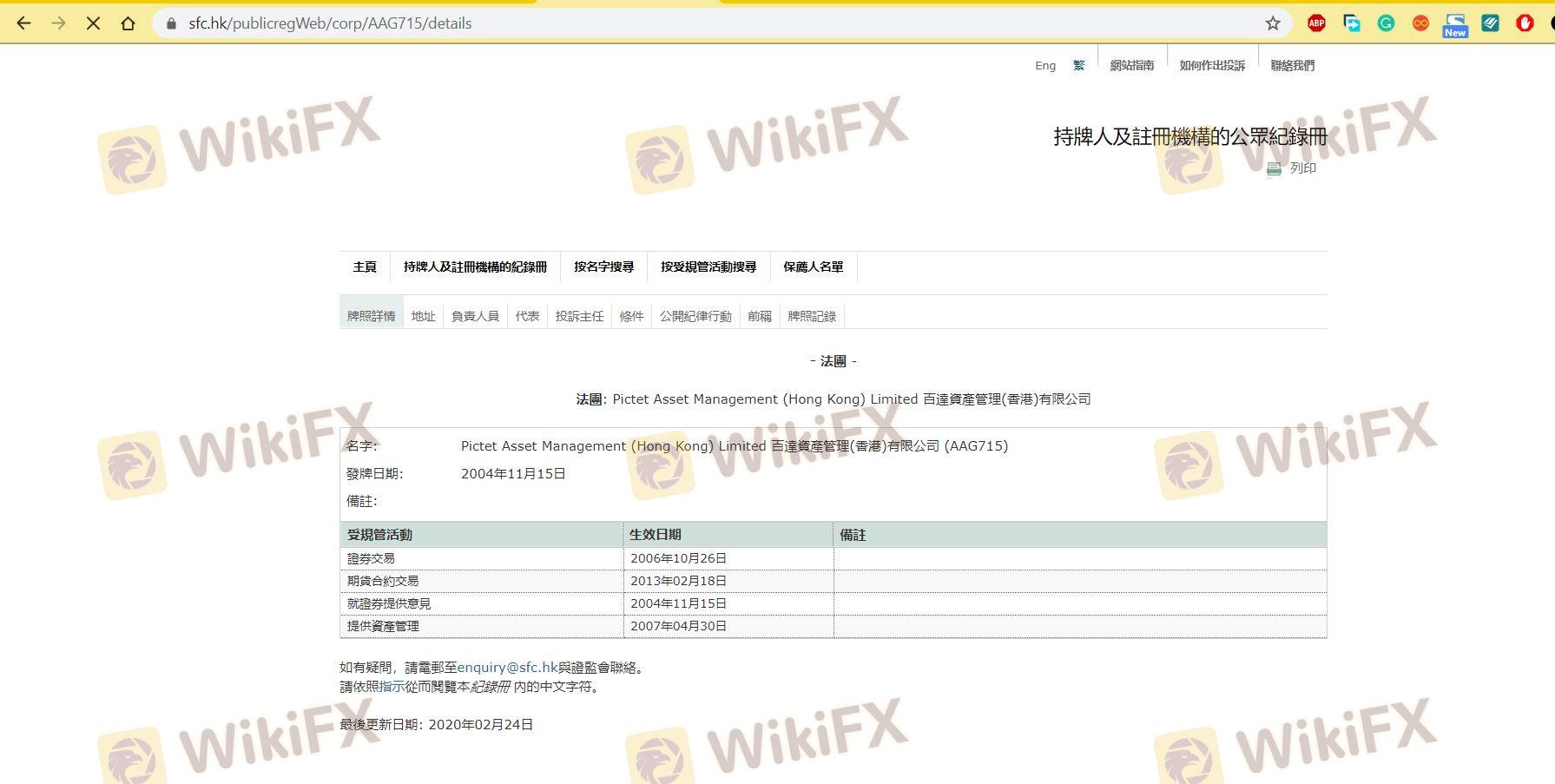 Mengenai legitimasi broker forex Pictet, ia menyediakan Hong Kong SFC, dan (Kami juga melakukan investigasi lapangan terkait aspek keamanan.).