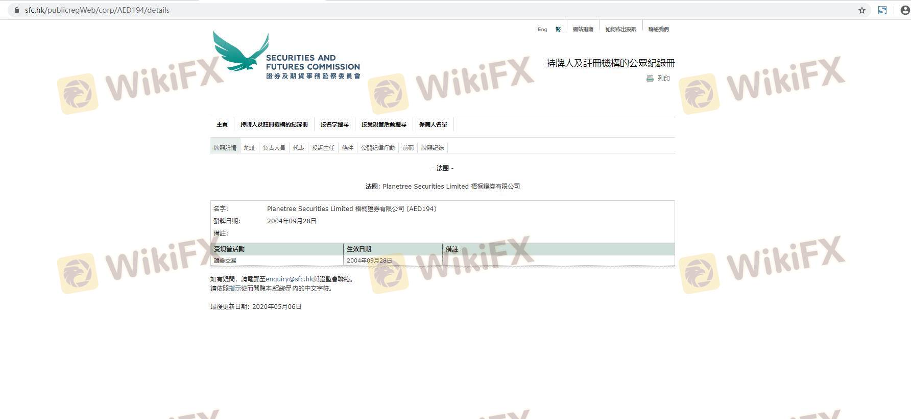 Mengenai legitimasi broker forex Planetree INTERNATIONAL, ia menyediakan Hong Kong SFC, Hong Kong SFC, dan (Kami juga melakukan investigasi lapangan terkait aspek keamanan.).