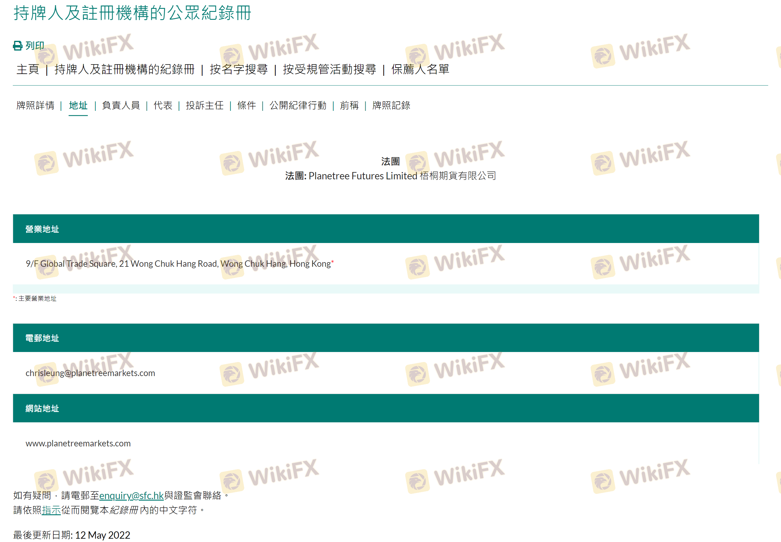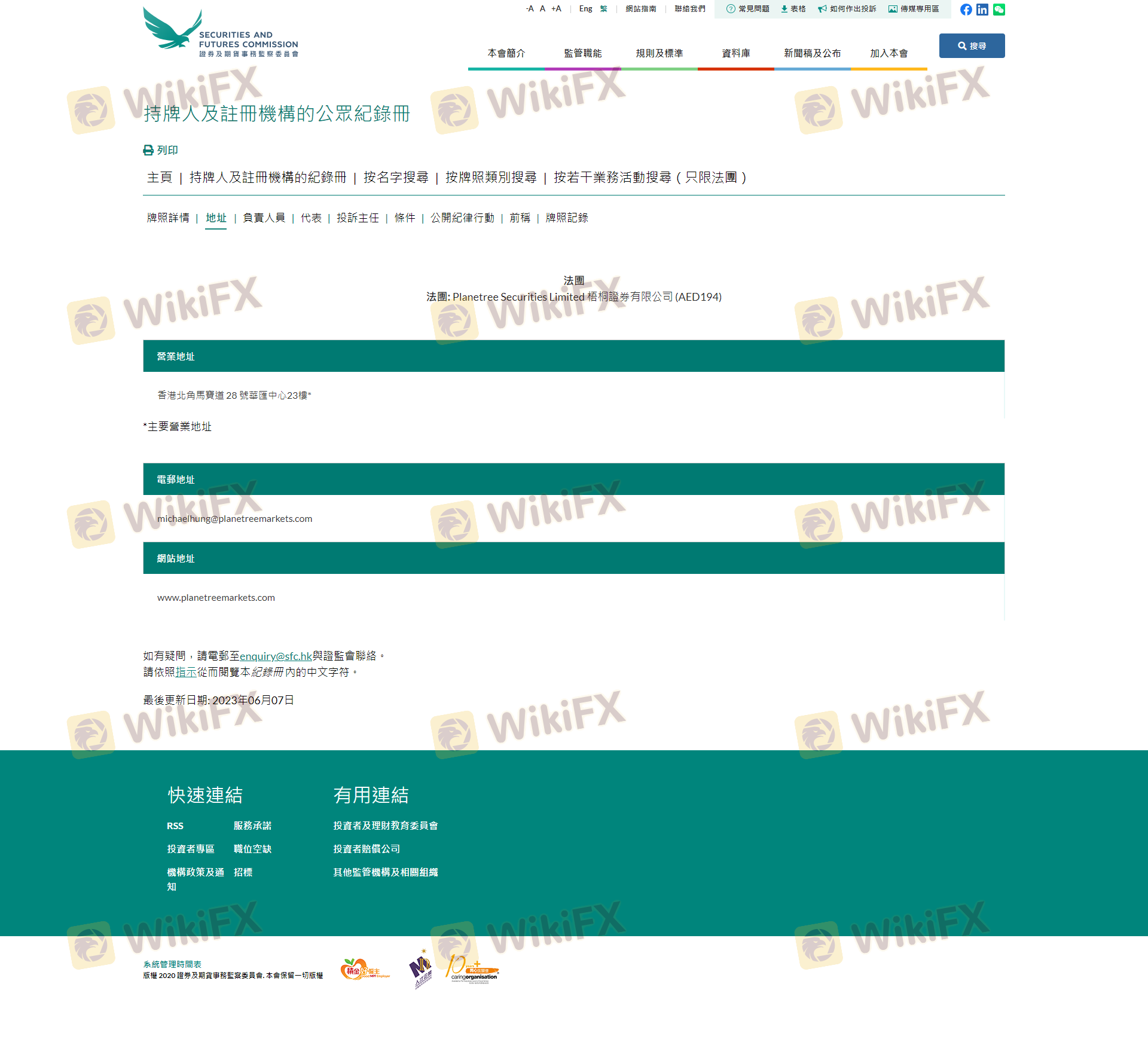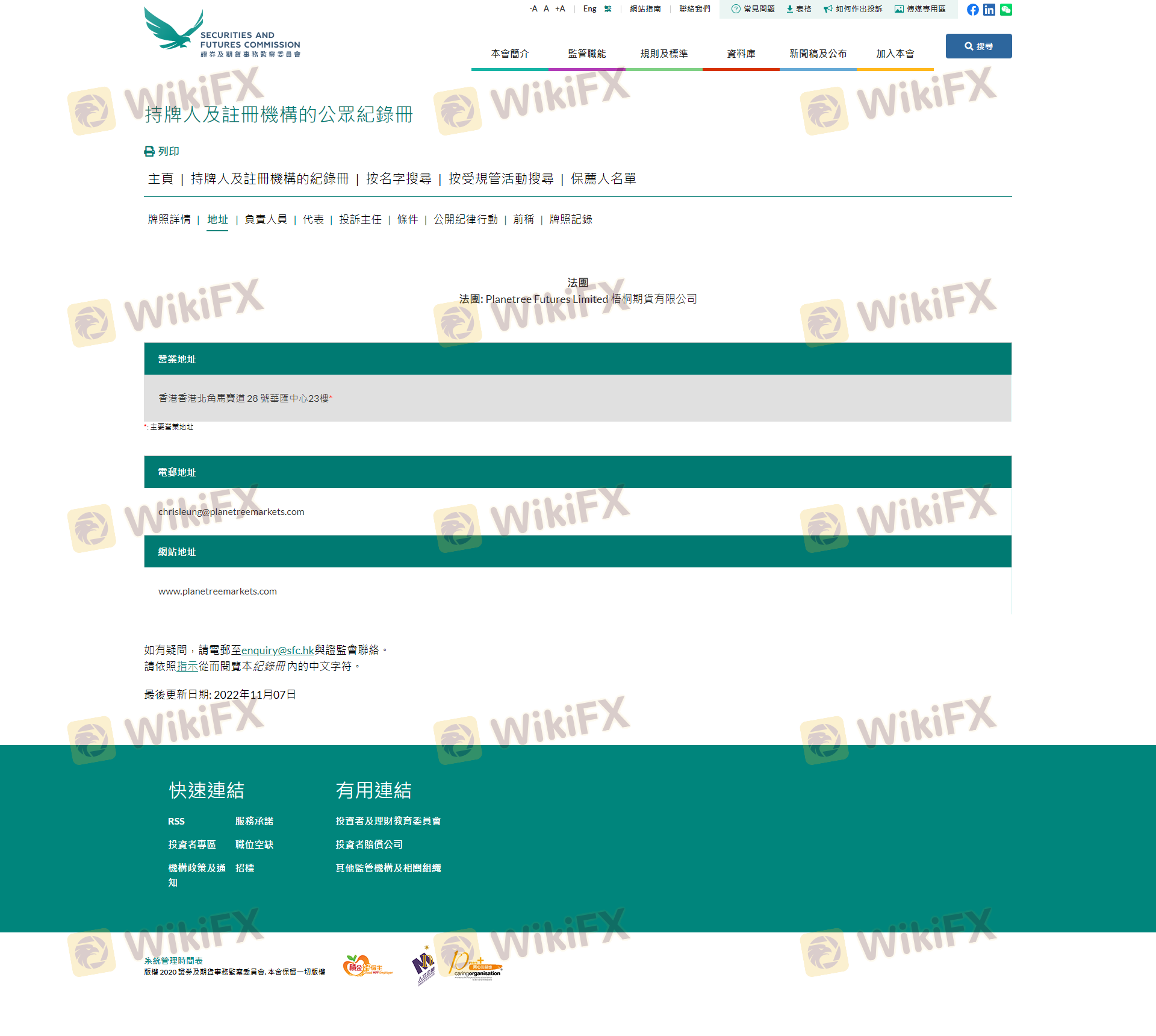 Mengenai legitimasi broker forex Planetree INTERNATIONAL, ia menyediakan Hong Kong SFC, Hong Kong SFC, dan (Kami juga melakukan investigasi lapangan terkait aspek keamanan.).