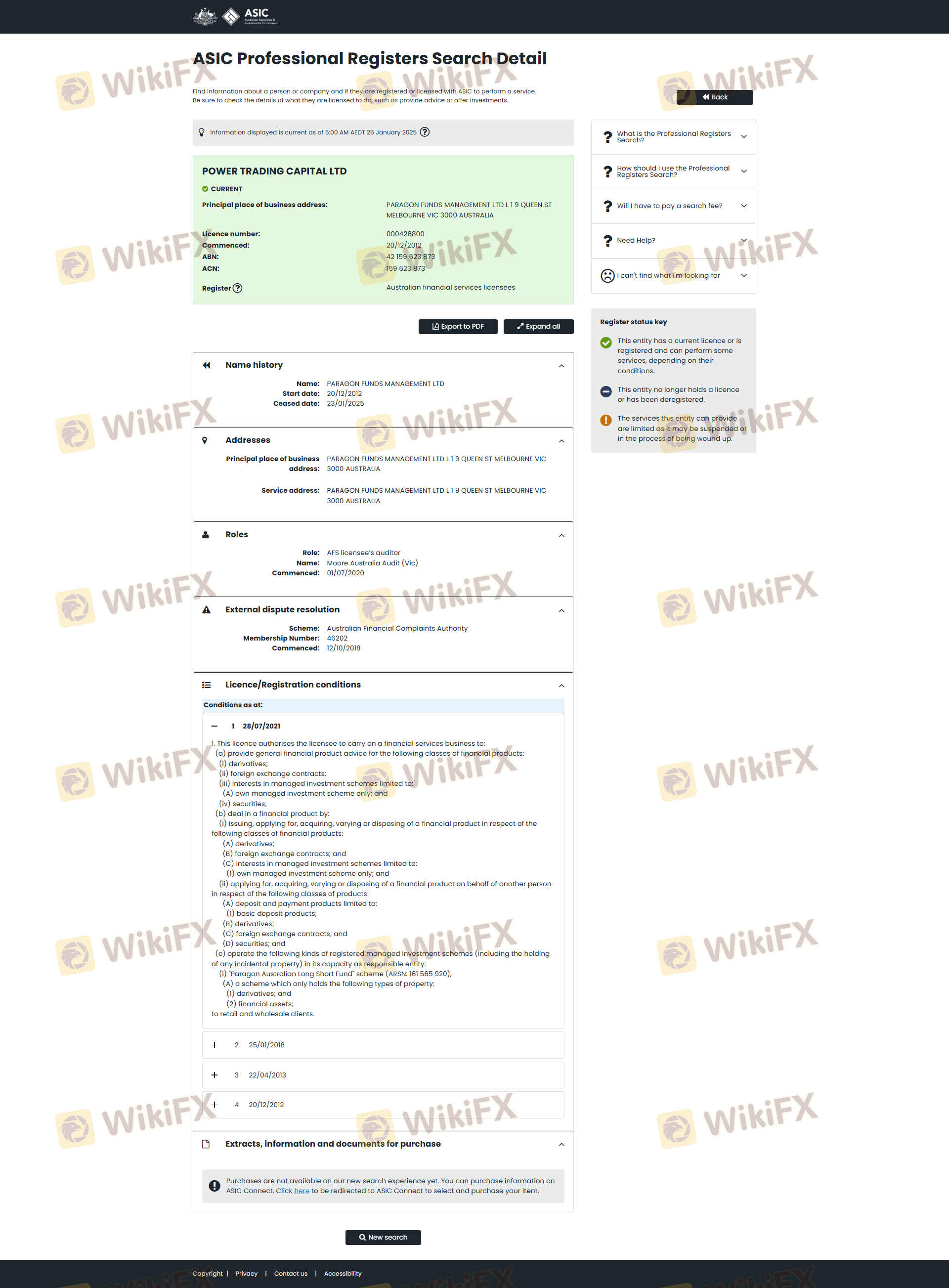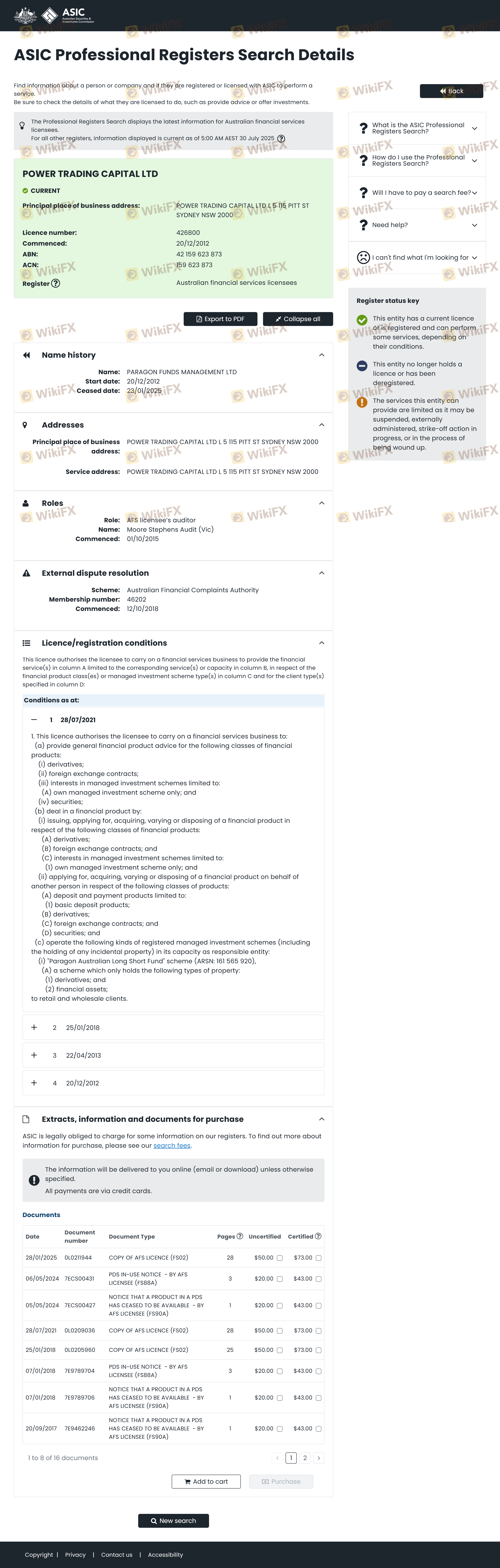 Regulasi adalah aspek fundamental dari kredibilitas broker keuangan apa pun. Ini berfungsi sebagai perlindungan bagi trader, memastikan bahwa broker mematuhi standar dan praktik tertentu yang dirancang untuk melindungi klien. Power Trading mengklaim diatur oleh Australian Securities and Investments Commission (ASIC), yang dikenal karena pengawasan ketatnya terhadap entitas keuangan. Namun, status regulasi broker ini telah menjadi titik pertentangan, dengan informasi yang bertentangan tersedia.