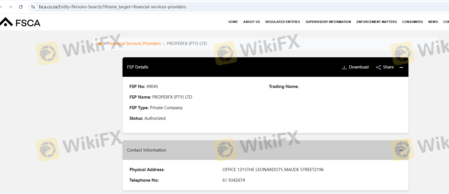 Status regulasi dari seorang broker forex adalah faktor kritis dalam menentukan keabsahannya. ProperFX mengklaim terdaftar di Afrika Selatan dan menunjukkan bahwa diatur oleh Financial Sector Conduct Authority (FSCA). Namun, kualitas regulasi ini dipertanyakan. FSCA telah dikritik karena pengawasannya yang longgar, terutama setelah negara tersebut ditempatkan dalam daftar abu-abu Financial Action Task Force (FATF) karena langkah-langkah anti pencucian uang yang tidak memadai.