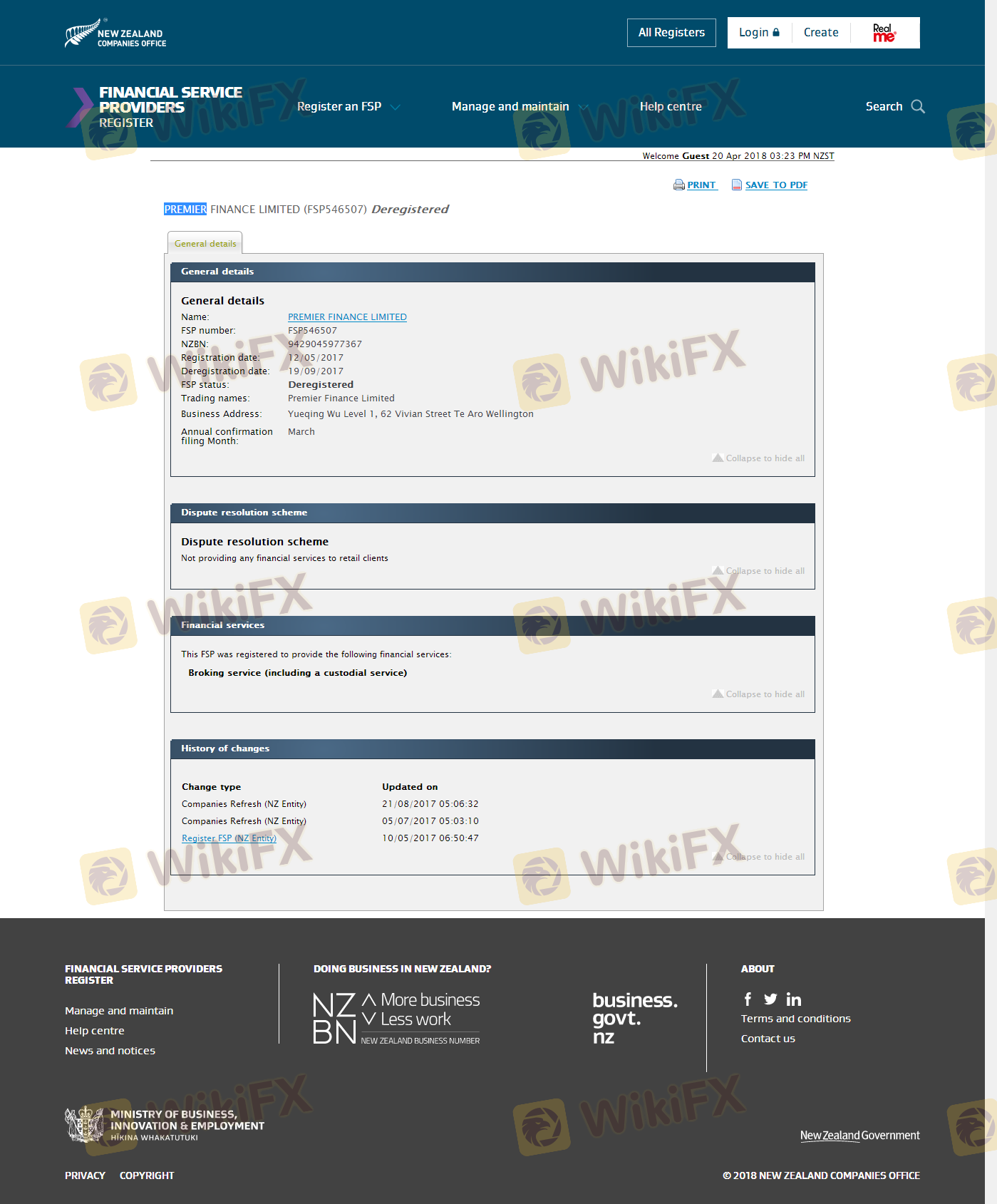 Mengenai legitimasi broker forex PREMIER, ia menyediakan Selandia Baru FSPR, dan (Kami juga melakukan investigasi lapangan terkait aspek keamanan.).