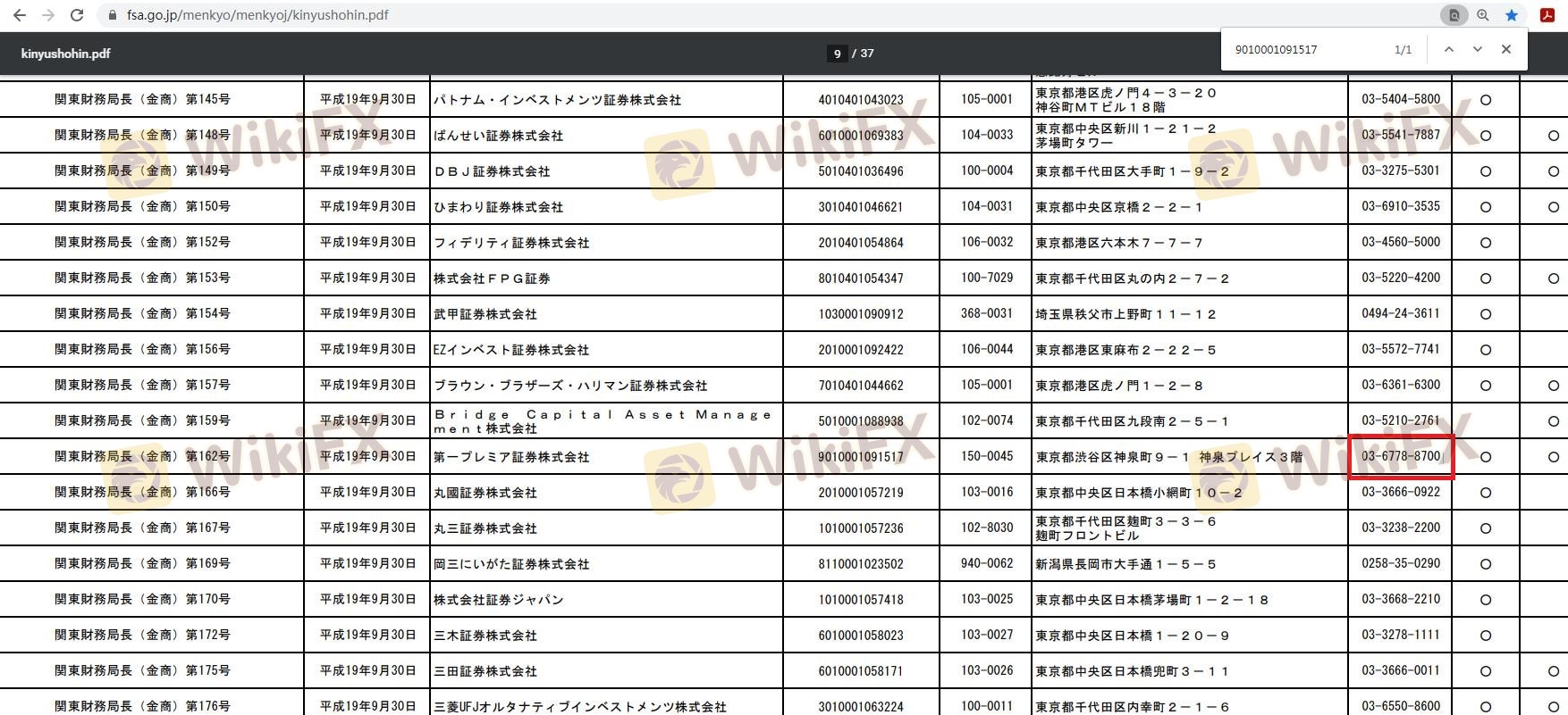 Mengenai legitimasi broker forex Premiere, ia menyediakan Jepang FSA, dan (Kami juga melakukan investigasi lapangan terkait aspek keamanan.).