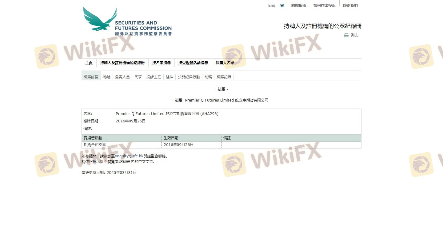 | Securities and Futures Commission (SFC) | AHA 296 (Futures) | Hong Kong | Aktif |