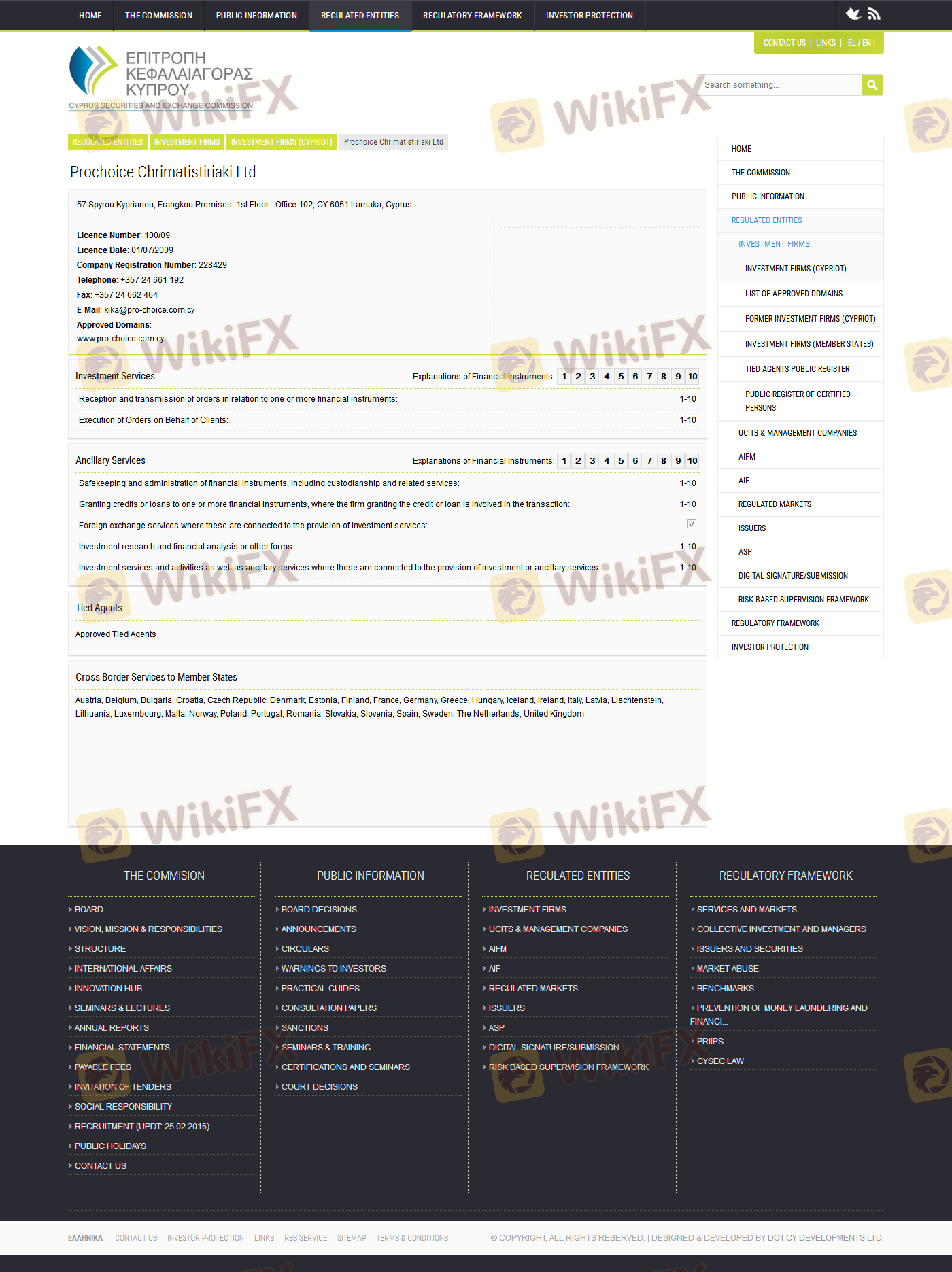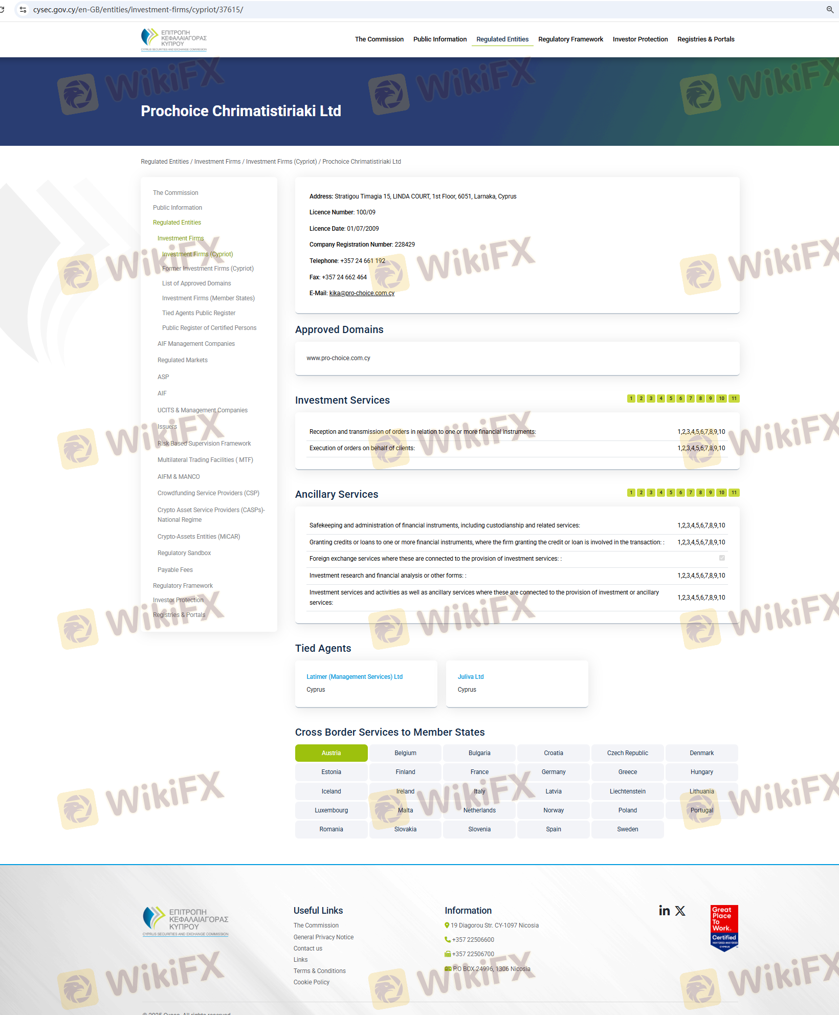 ProChoice beroperasi di bawah kepemilikan Chrimatistiriaki Ltd., sebuah perusahaan yang didirikan di Siprus. Broker ini telah berada di pasar sejak 2013 dan mengklaim menawarkan berbagai instrumen trading, termasuk forex, komoditas, dan indeks. Namun, transparansi perusahaan terkait struktur kepemilikan dan praktik operasionalnya kurang ideal.