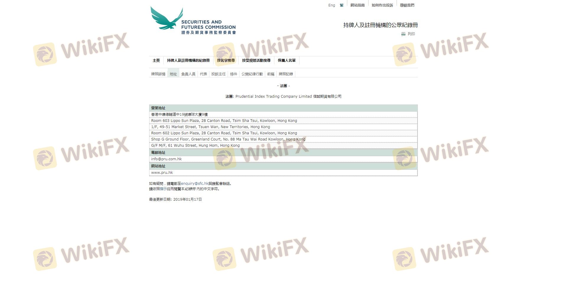 Mengenai legitimasi broker forex PRUDENTIAL BROKERAGE, ia menyediakan Hong Kong SFC, dan (Kami juga melakukan investigasi lapangan terkait aspek keamanan.).