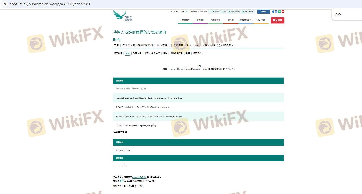 Salah satu faktor utama yang menentukan keamanan suatu broker adalah status regulasinya. Regulasi berfungsi sebagai mekanisme perlindungan bagi trader, memastikan bahwa broker mematuhi standar dan praktik yang ketat. Prudential Brokerage mengklaim diatur oleh Securities and Futures Commission (SFC) Hong Kong. Berikut adalah ringkasan informasi regulasi mengenai Prudential Brokerage: