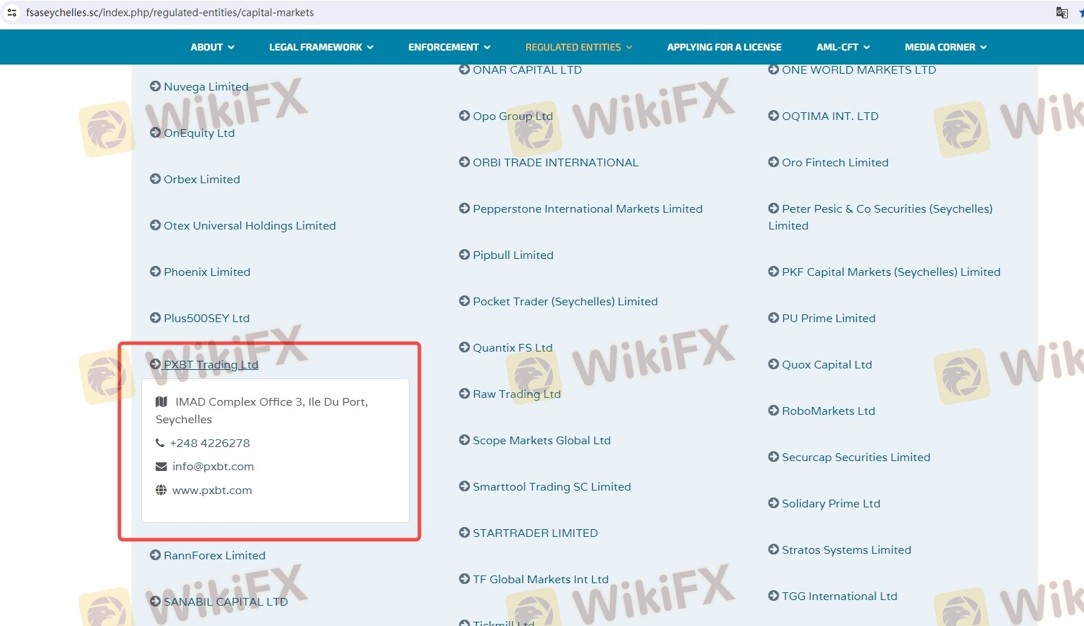 Status regulasi sebuah platform perdagangan adalah salah satu faktor paling kritis dalam menentukan legitimasinya. Regulasi berfungsi sebagai perlindungan bagi trader, memastikan bahwa broker mematuhi standar industri dan menawarkan tingkat perlindungan dalam kasus sengketa atau pelanggaran. Sayangnya, PXBT beroperasi di bawah Otoritas Layanan Keuangan Seychelles (FSA), yang dikenal memiliki regulasi yang lebih longgar dibandingkan dengan yurisdiksi lain.