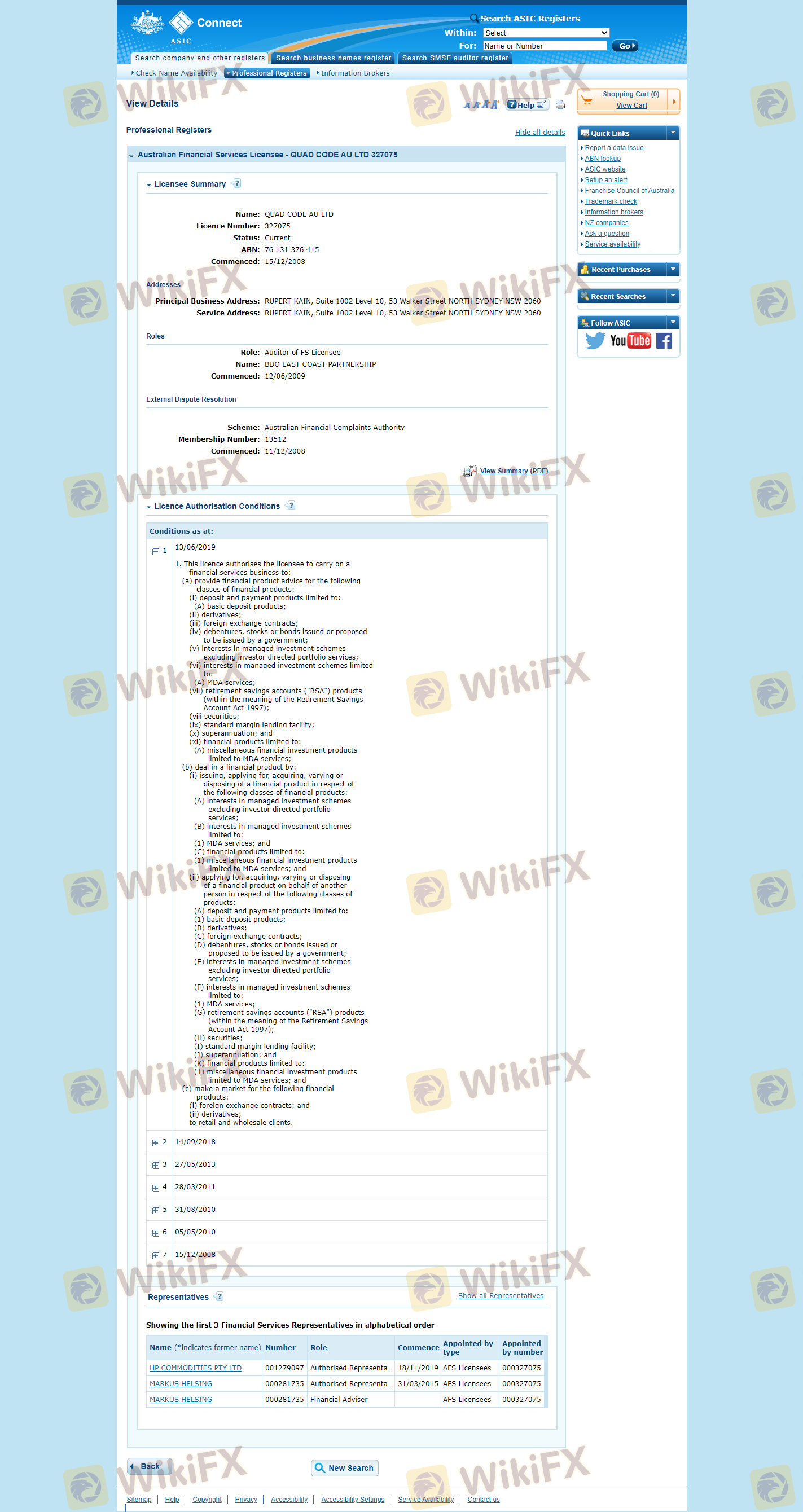 Mengenai legitimasi broker forex quadcode markets, ia menyediakan Australia ASIC, Siprus CYSEC, dan (Kami juga melakukan investigasi lapangan terkait aspek keamanan.).