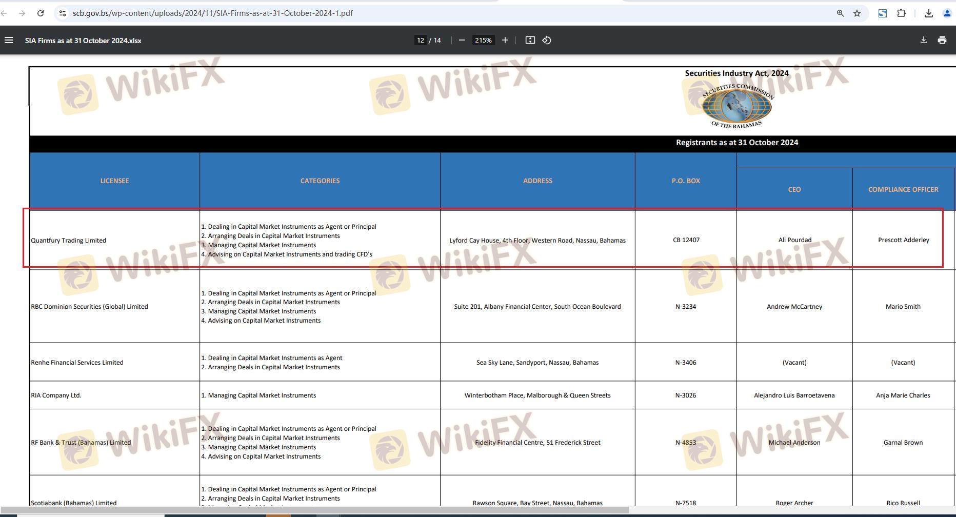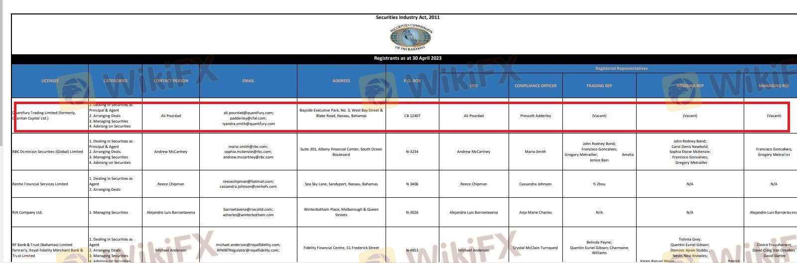 Mengenai legitimasi broker forex QUANTFURY, ia menyediakan Kerajaan Inggris FCA, Bahama SCB, dan .
