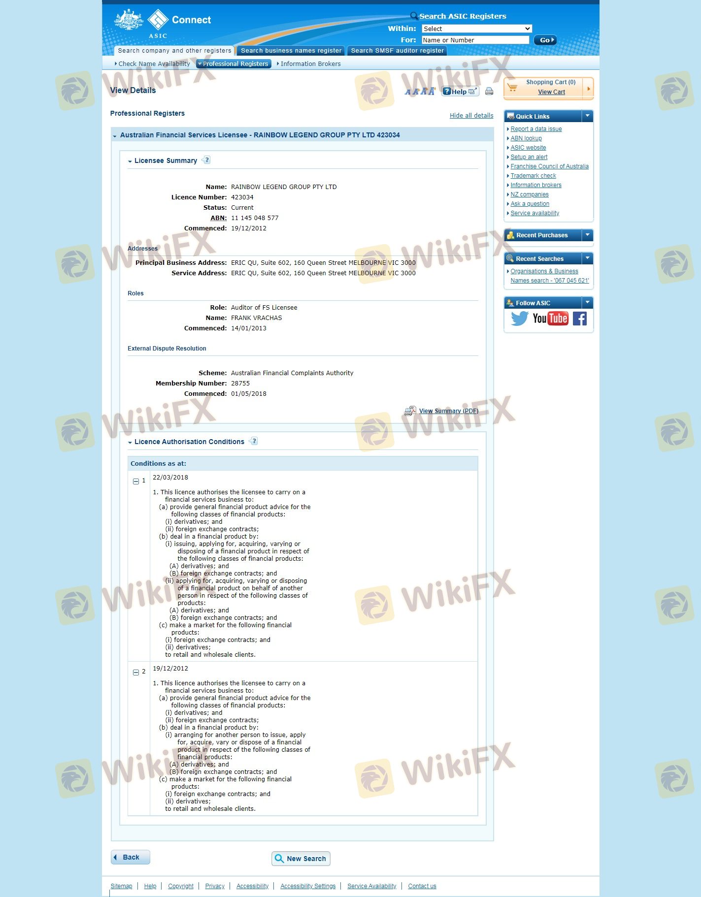 Mengenai legitimasi broker forex Rainbow Legend Group, ia menyediakan Australia ASIC, dan (Kami juga melakukan investigasi lapangan terkait aspek keamanan.).