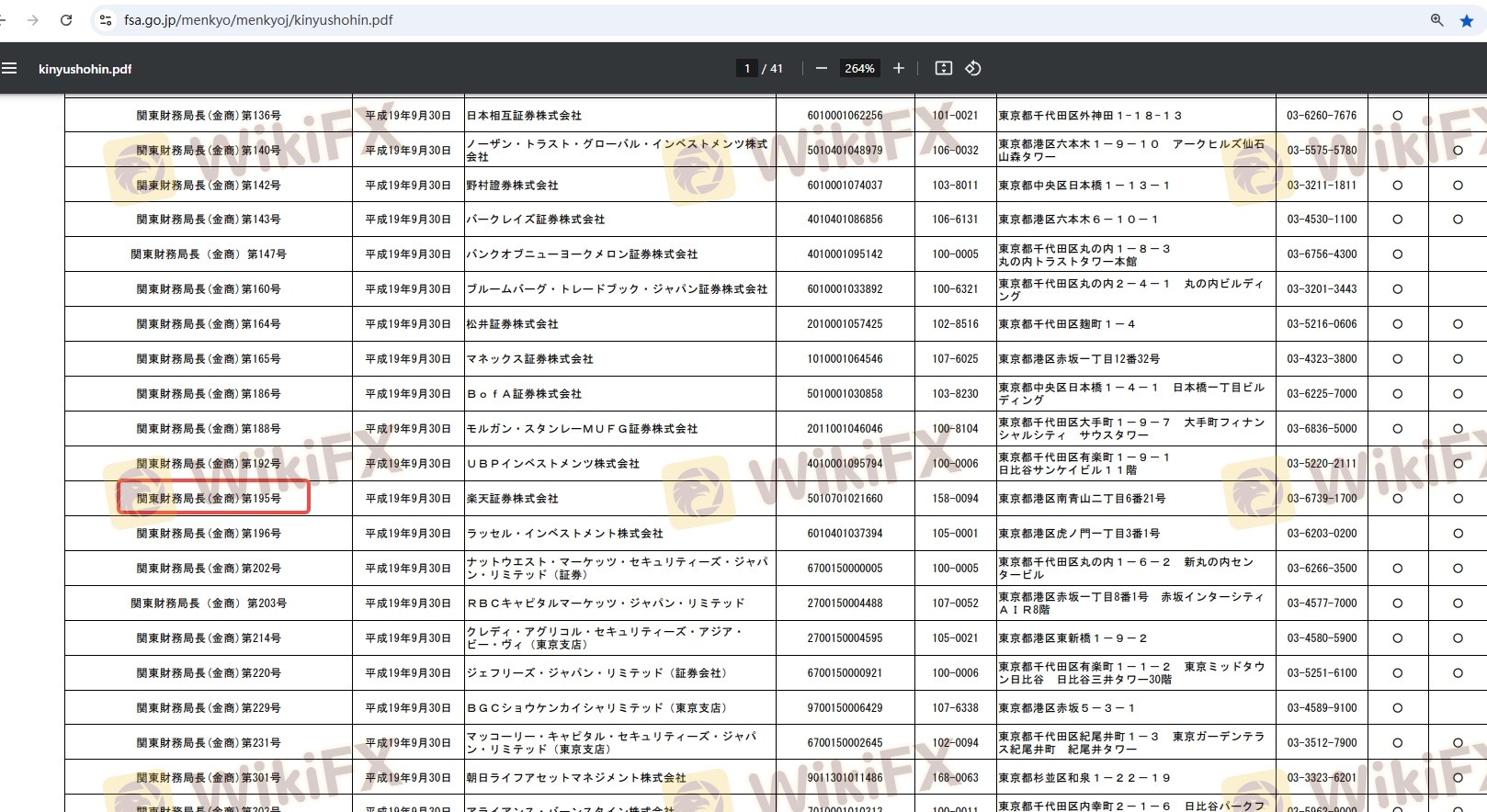Lingkungan regulasi adalah aspek penting dari kredibilitas broker mana pun. Rakuten Securities beroperasi di bawah pengawasan beberapa otoritas keuangan yang sangat dihormati, yang meningkatkan legitimasinya di mata trader. Berikut adalah ringkasan informasi regulasi inti: