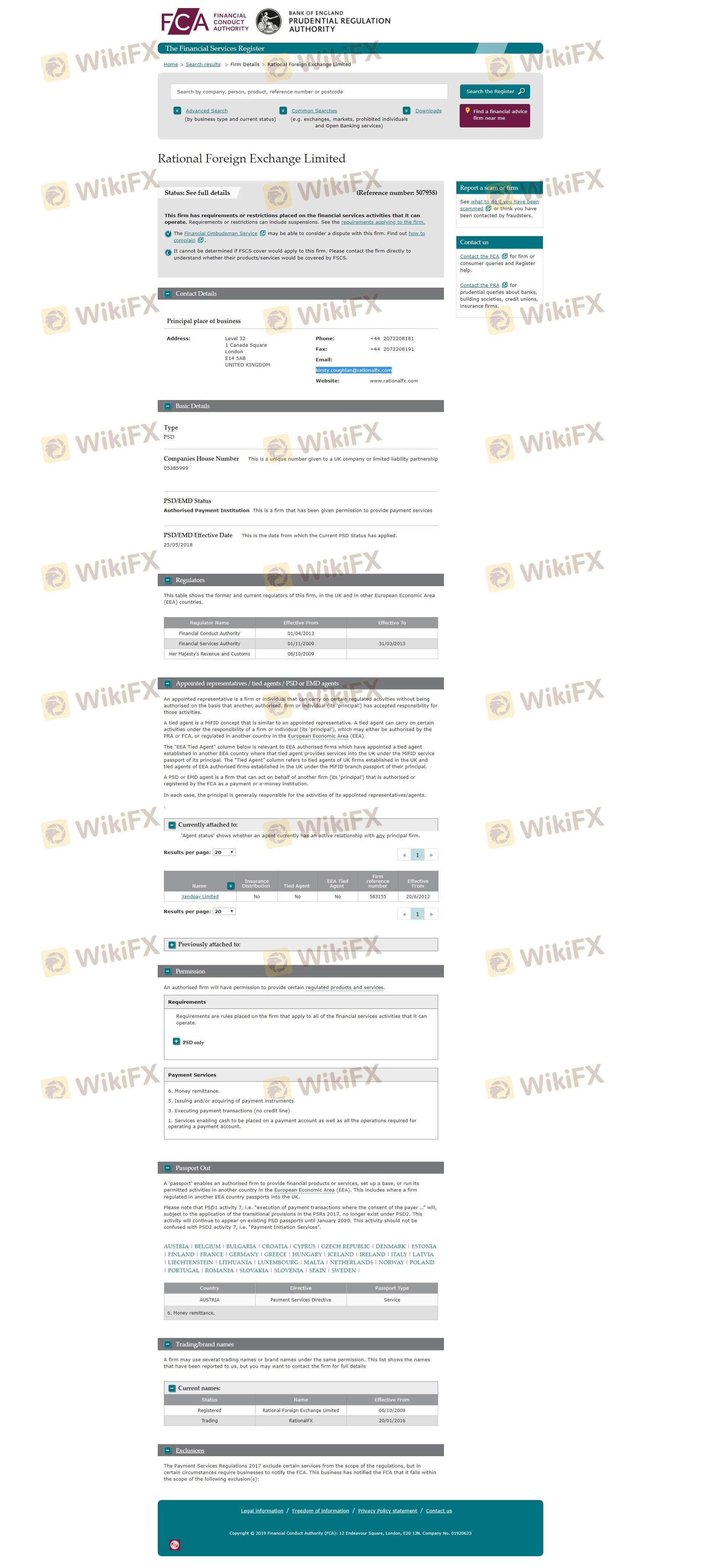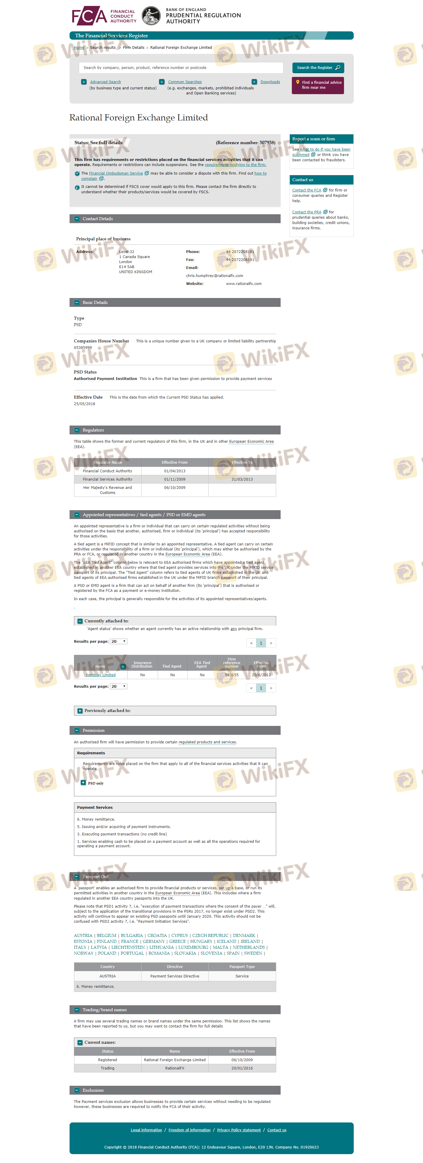 RationalFX diatur oleh Financial Conduct Authority (FCA) di Inggris, yang merupakan indikator signifikan dari legitimasinya sebagai penyedia layanan keuangan. FCA dikenal karena standar dan pengawasannya yang ketat, yang bertujuan untuk melindungi konsumen dan memastikan bahwa perusahaan keuangan beroperasi secara adil. Tabel berikut merangkum informasi regulasi inti mengenai RationalFX: