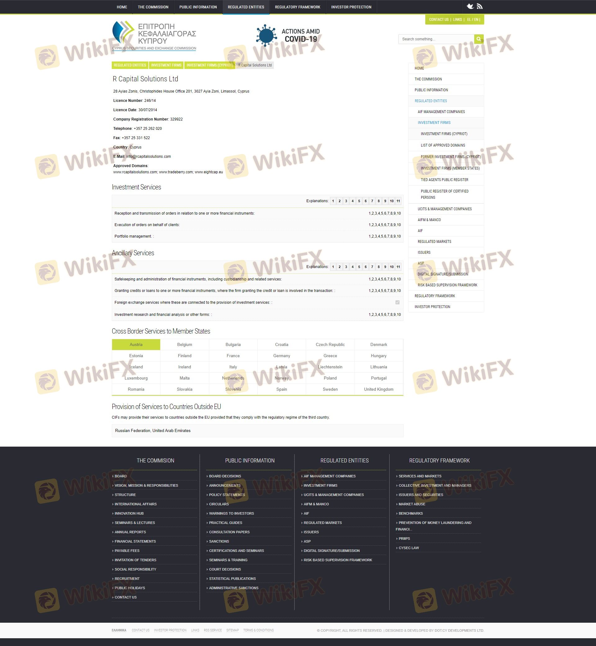 Status regulasi broker adalah salah satu faktor paling kritis dalam menilai keamanannya. RCS terdaftar di Siprus dan mengklaim diatur oleh Cyprus Securities and Exchange Commission (CySEC). Namun, beberapa sumber menunjukkan bahwa RCS beroperasi di bawah lisensi regulasi yang mencurigakan, menimbulkan kekhawatiran tentang legitimasinya.