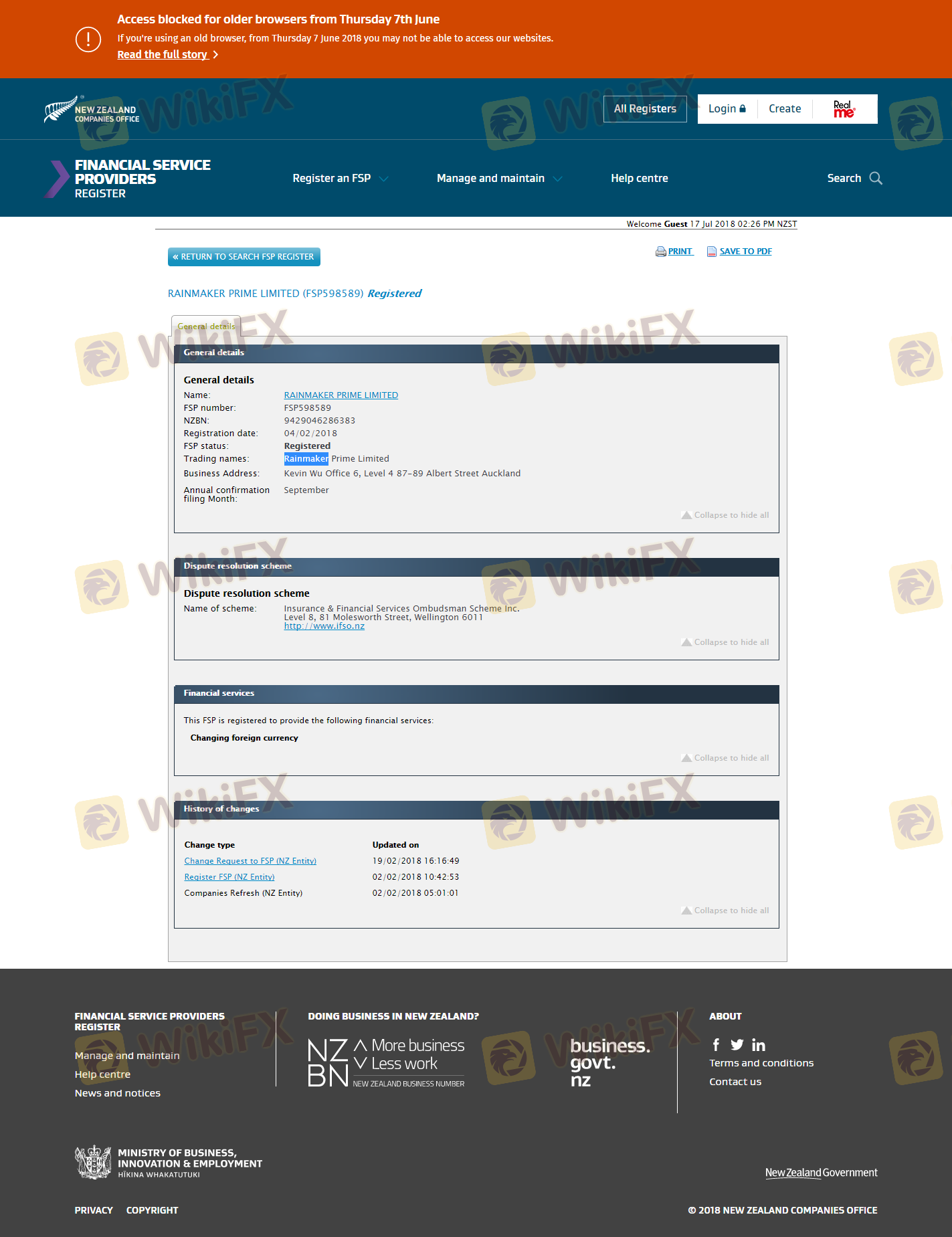Mengenai legitimasi broker forex RMFX, ia menyediakan Selandia Baru FSPR, dan (Kami juga melakukan investigasi lapangan terkait aspek keamanan.).