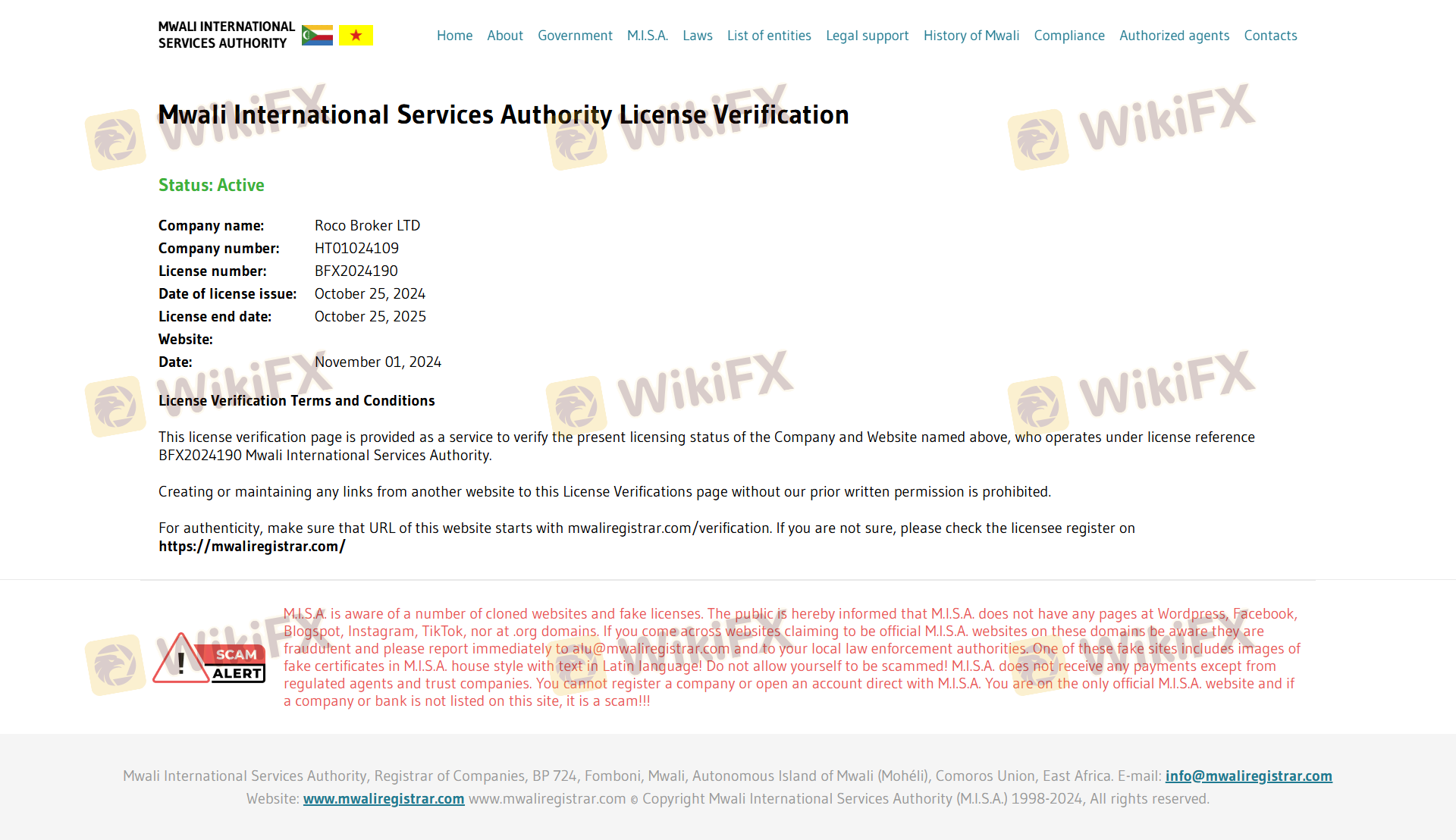 Mengenai legitimasi broker forex ROCO, ia menyediakan Komoro MISA, dan .