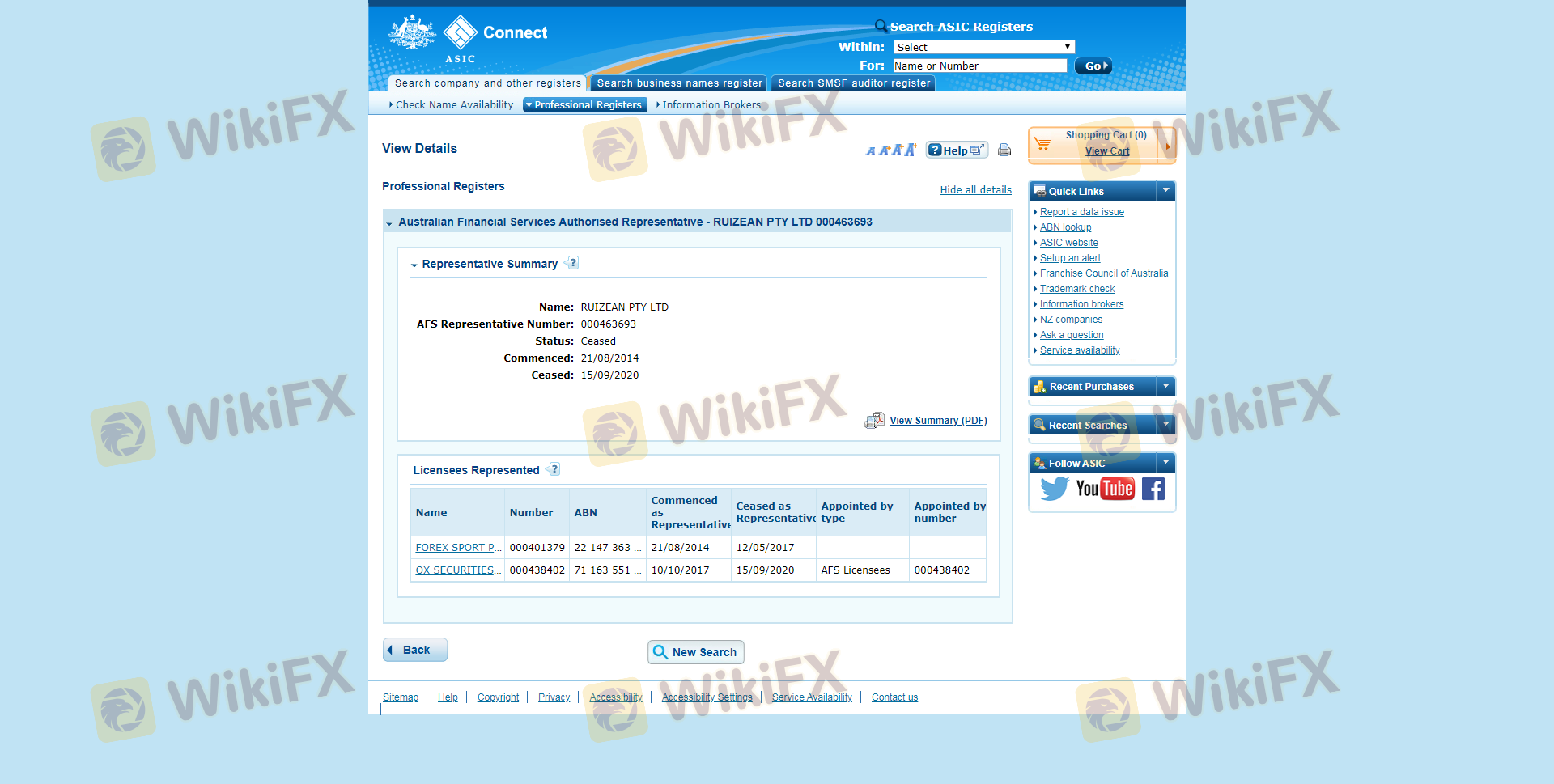 Mengenai legitimasi broker forex RZ Forex, ia menyediakan Australia ASIC, dan (Kami juga melakukan investigasi lapangan terkait aspek keamanan.).