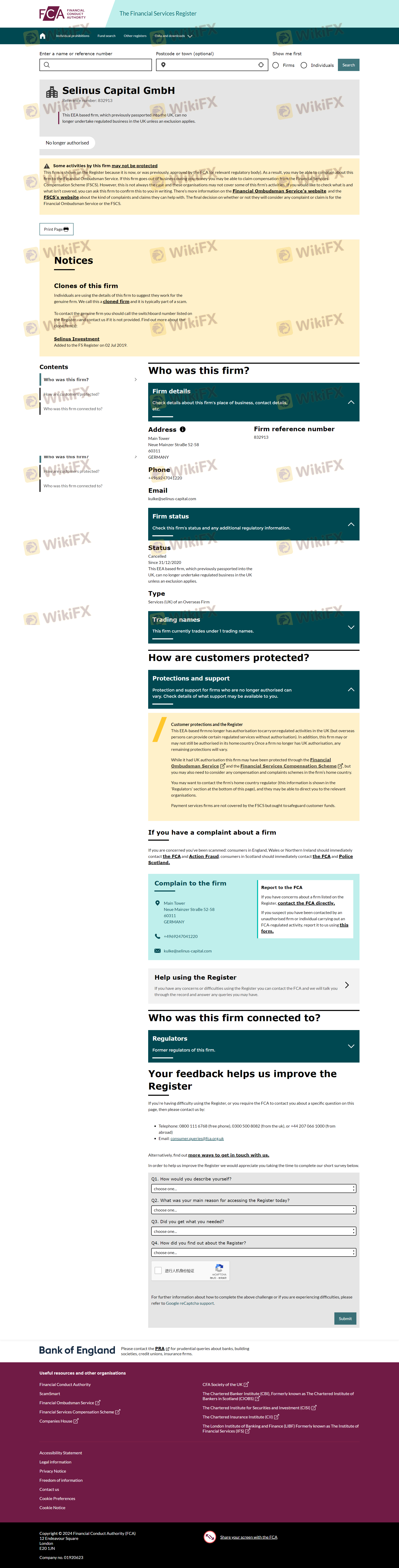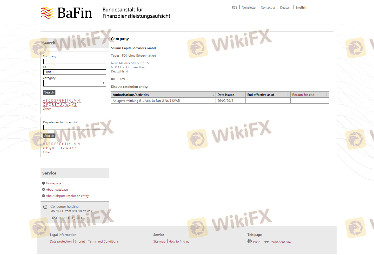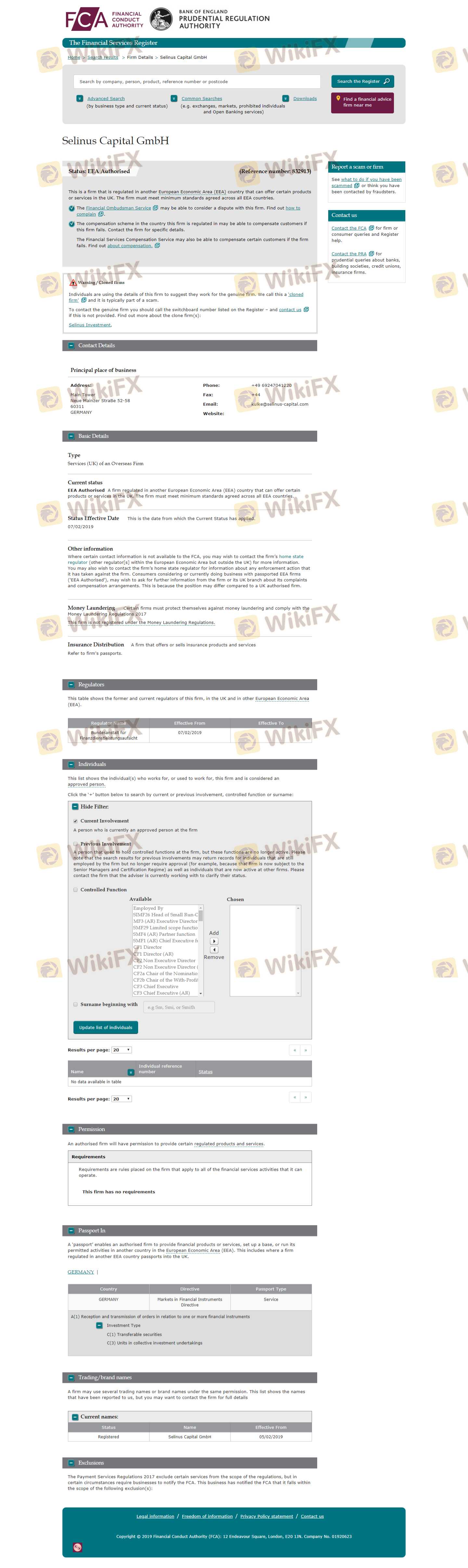 Mengenai legitimasi broker forex SELINUS, ia menyediakan Kerajaan Inggris FCA, Jerman BaFin, dan (Kami juga melakukan investigasi lapangan terkait aspek keamanan.).