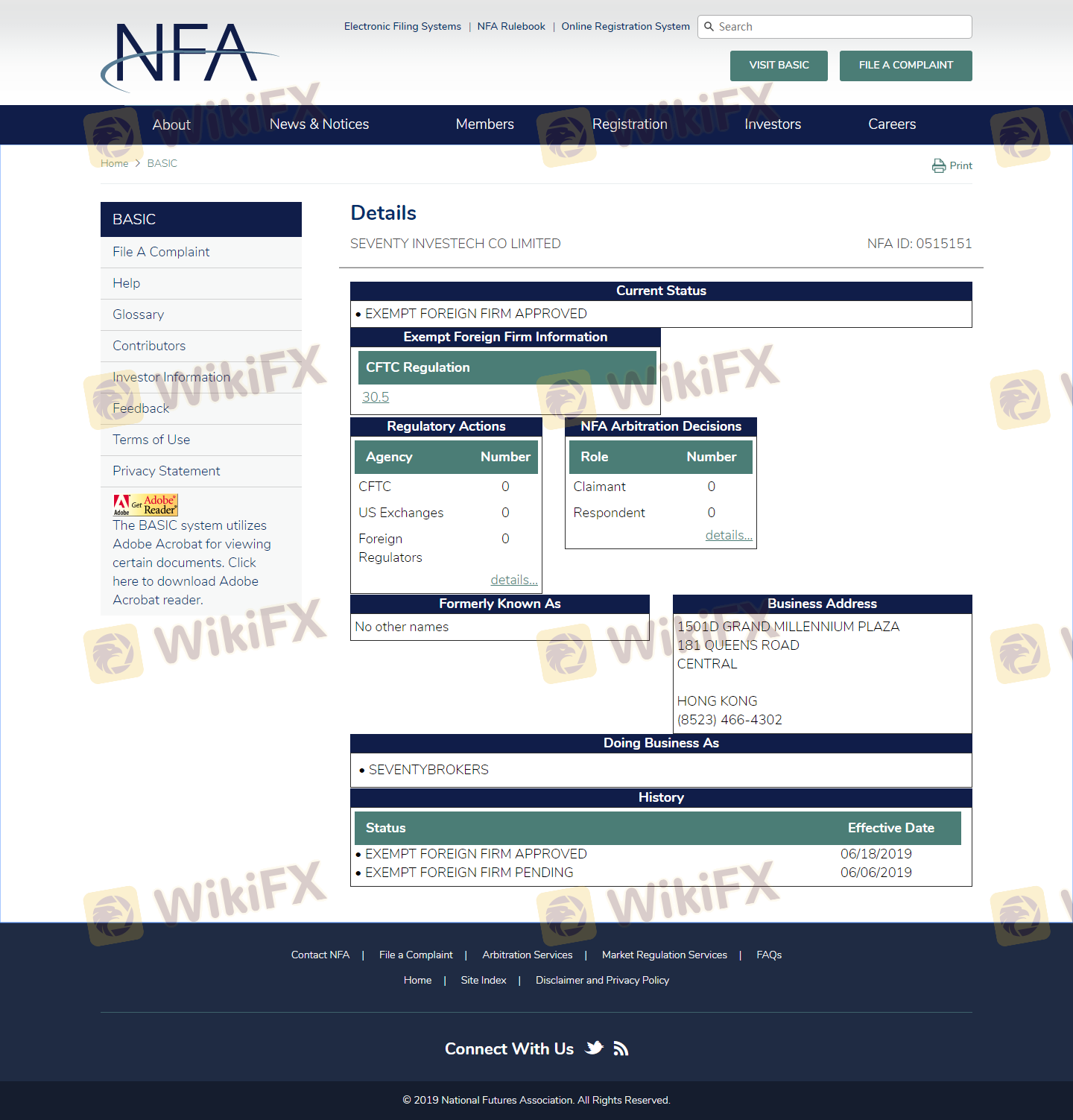 Mengenai legitimasi broker forex Seventy Brokers, ia menyediakan Australia ASIC, Vanuatu VFSC, Amerika Serikat NFA, dan (Kami juga melakukan investigasi lapangan terkait aspek keamanan.).