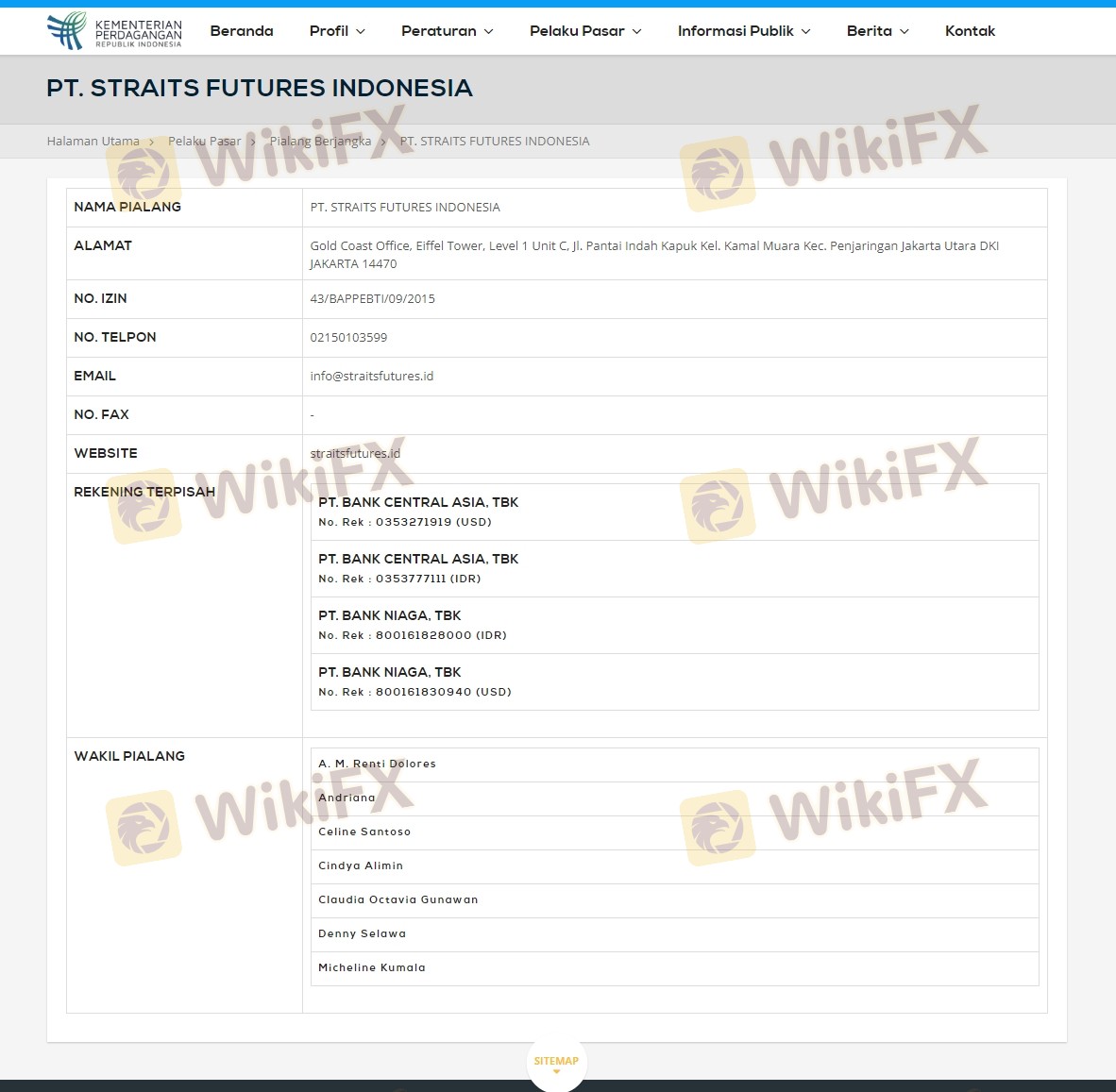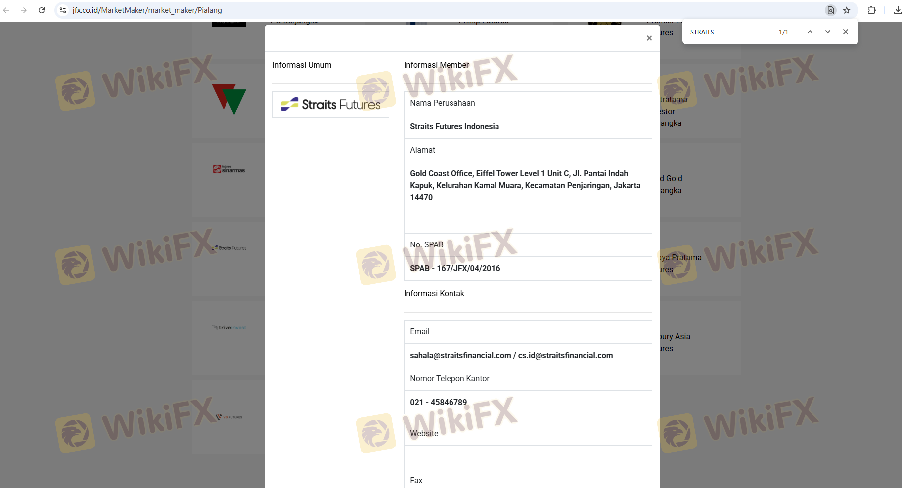 Mengenai legitimasi broker forex Straits Futures, ia menyediakan Indonesia BAPPEBTI, Indonesia JFX, dan (Kami juga melakukan investigasi lapangan terkait aspek keamanan.).