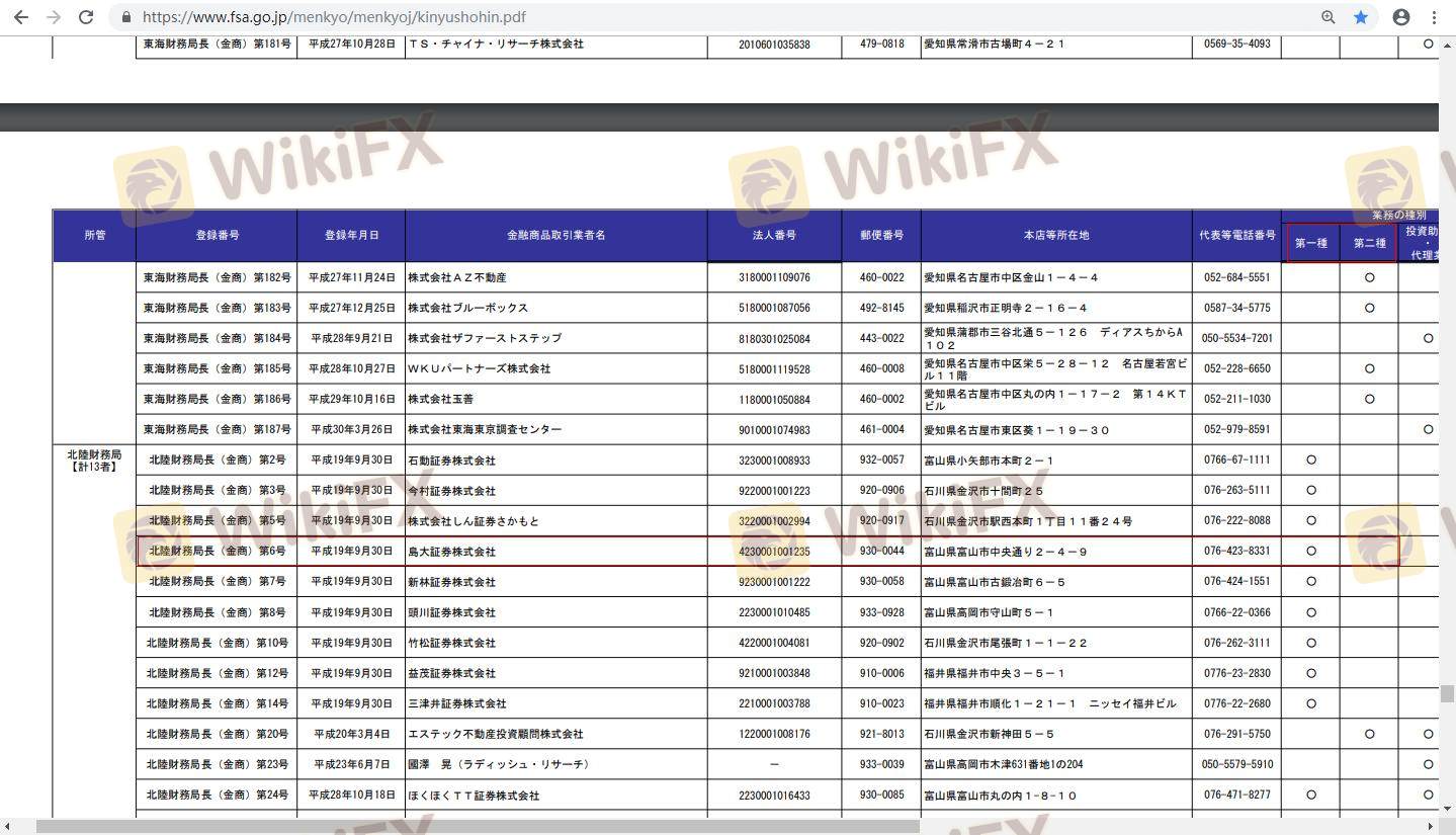 | Financial Services Agency (FSA) | 北陸 財務 局長 ( 金 商 ) 第 6 号 | Jepang | Terverifikasi |