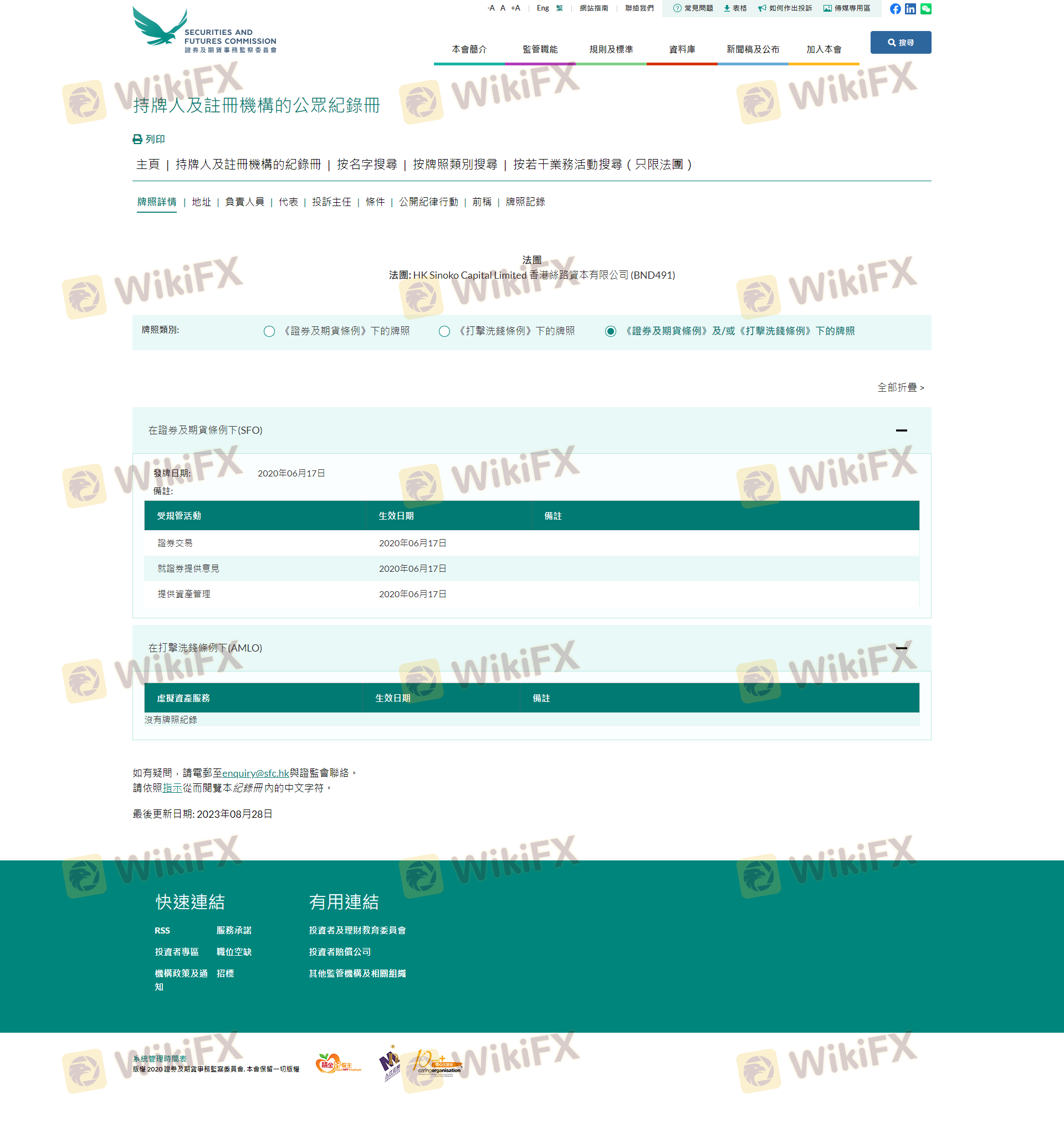 Mengenai legitimasi broker forex SINOKO, ia menyediakan Hong Kong SFC, dan (Kami juga melakukan investigasi lapangan terkait aspek keamanan.).