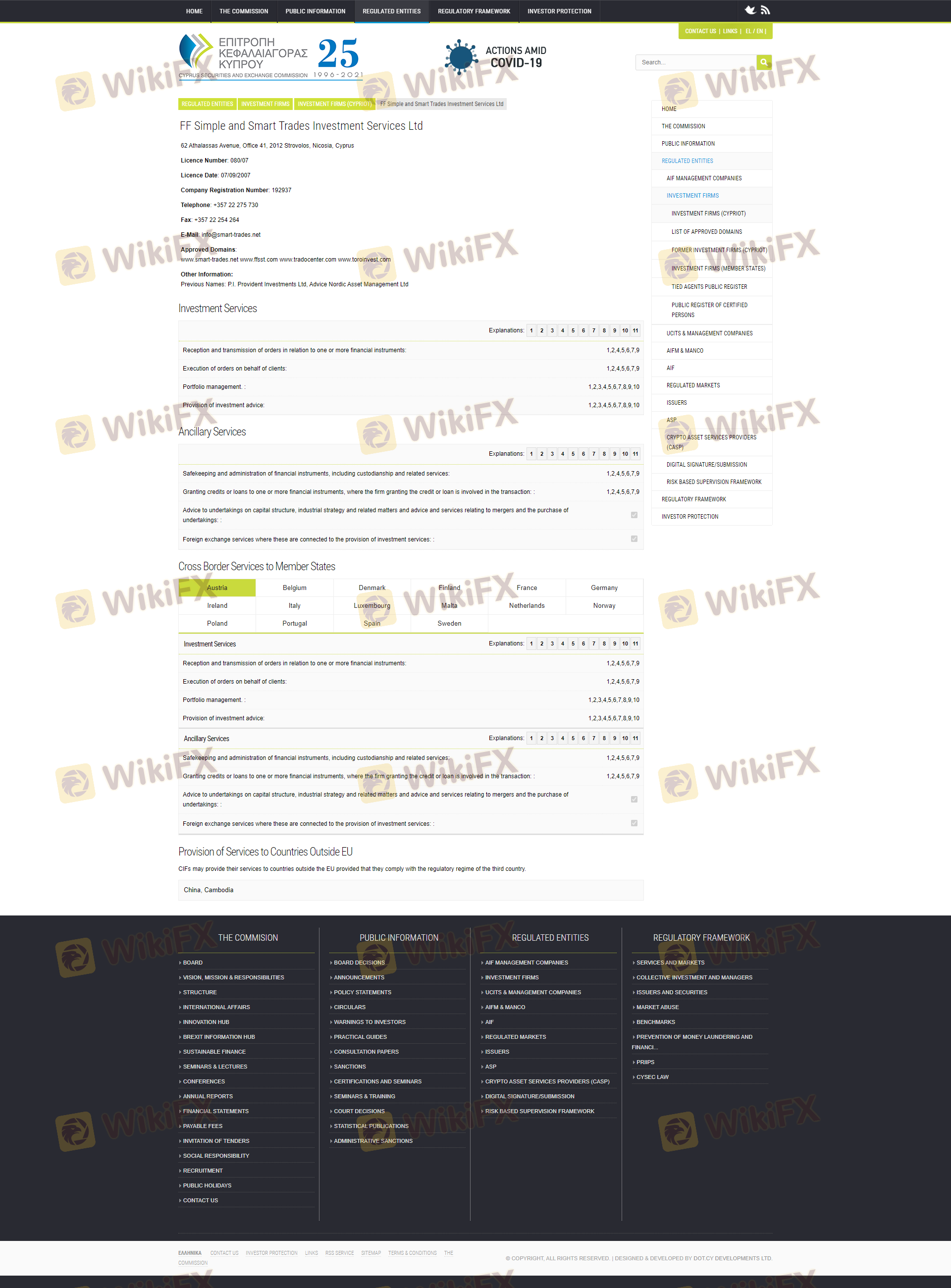 Berikut adalah ringkasan status regulasi Smart Trades: