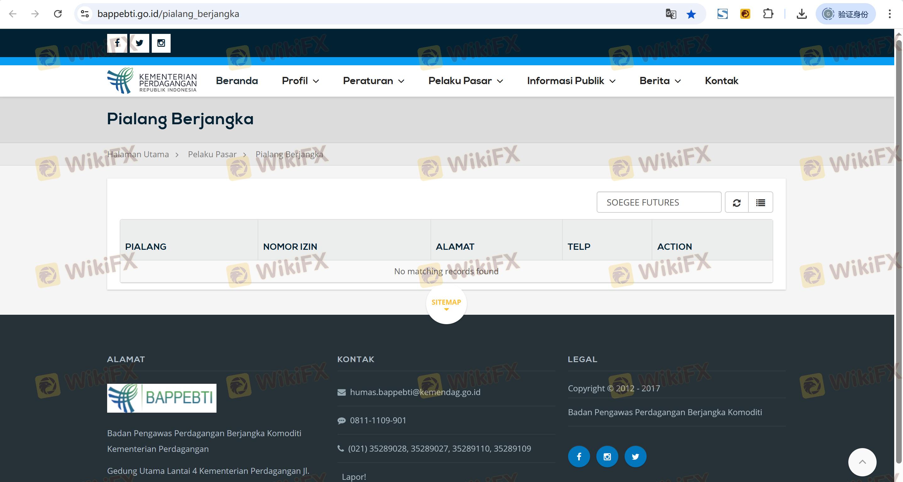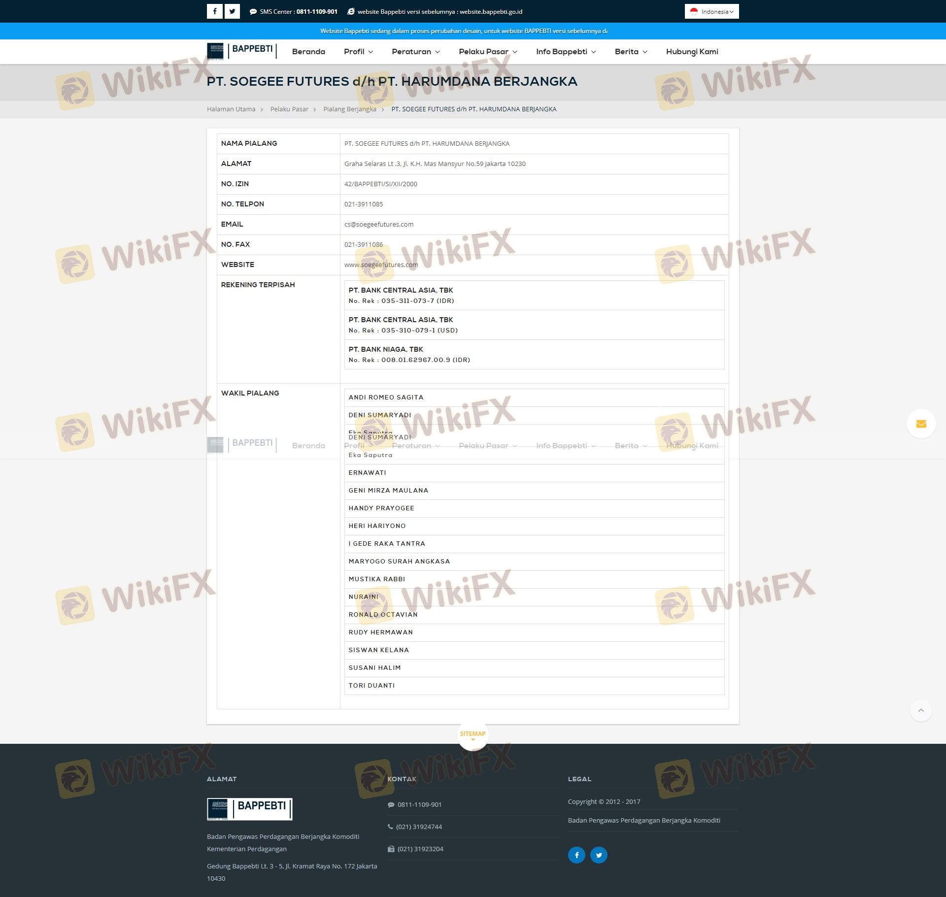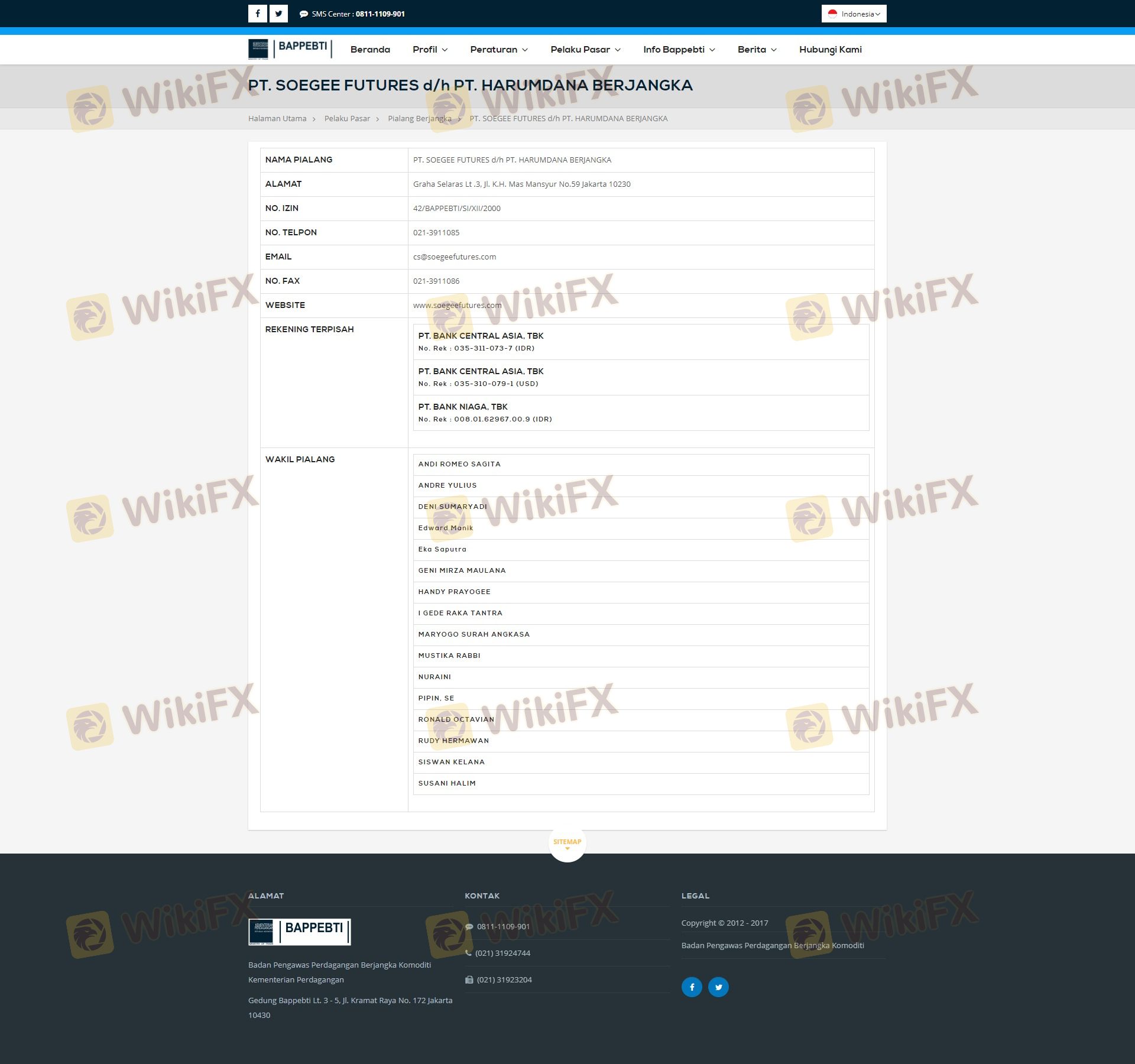 Mengenai legitimasi broker forex SÔEGEE FUTURES, ia menyediakan Indonesia BAPPEBTI, dan (Kami juga melakukan investigasi lapangan terkait aspek keamanan.).