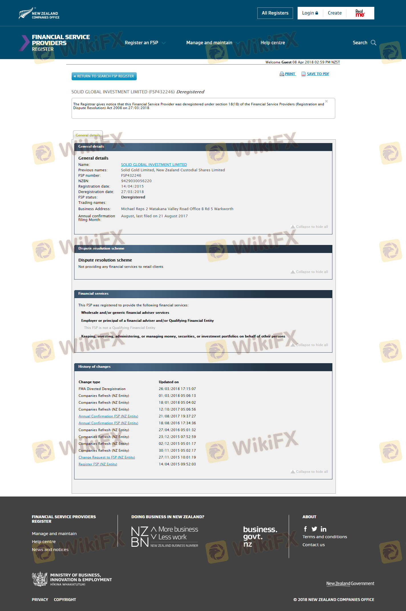 Status regulasi broker sangat penting untuk memastikan keamanan dana para pedagang dan legitimasi operasinya secara keseluruhan. Dalam kasus Solid Global, broker ini telah menghadapi pemeriksaan yang signifikan terkait kerangka regulasinya. Menurut informasi yang tersedia, Solid Global sebelumnya memiliki lisensi di bawah Financial Service Providers Register (FSPR) di Selandia Baru; namun, lisensi ini telah dicabut, menimbulkan kekhawatiran serius terkait legalitas operasionalnya.