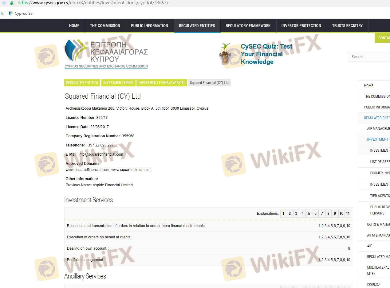 Mengenai legitimasi broker forex Squared Financial, ia menyediakan Siprus CYSEC, Seychelles FSA, dan .