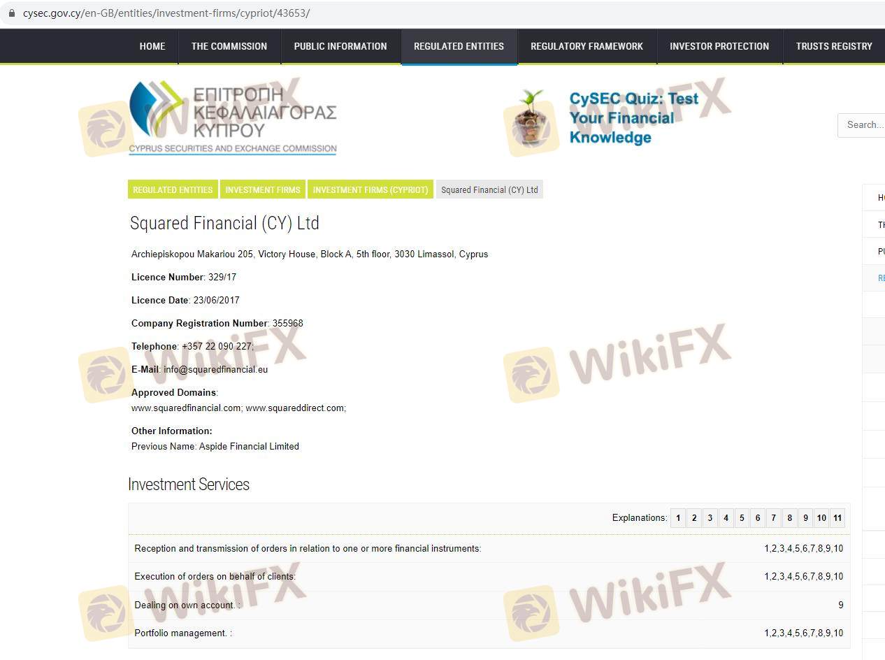 Mengenai legitimasi broker forex SquaredFinancial, ia menyediakan Siprus CYSEC, Seychelles FSA, dan .