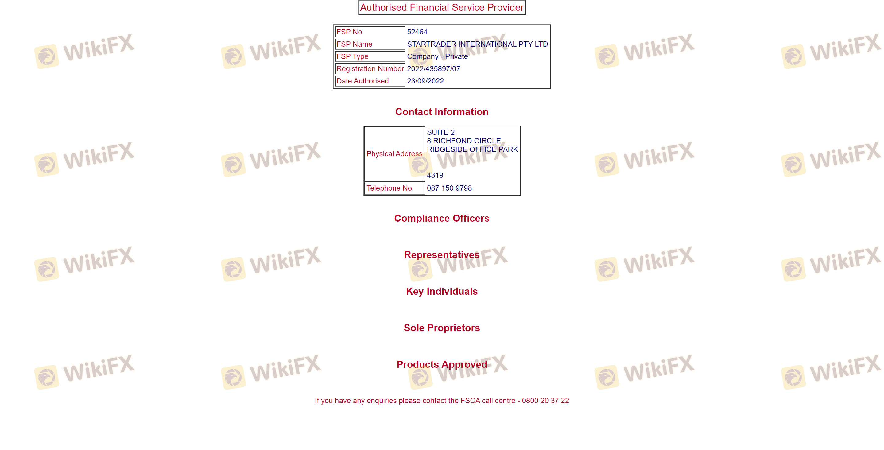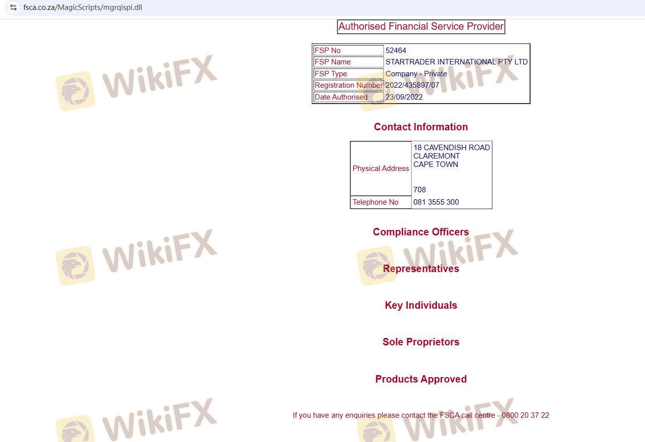 Mengenai legitimasi broker forex STARTRADER, ia menyediakan Australia ASIC, Afrika Selatan FSCA, Seychelles FSA, dan (Kami juga melakukan investigasi lapangan terkait aspek keamanan.).