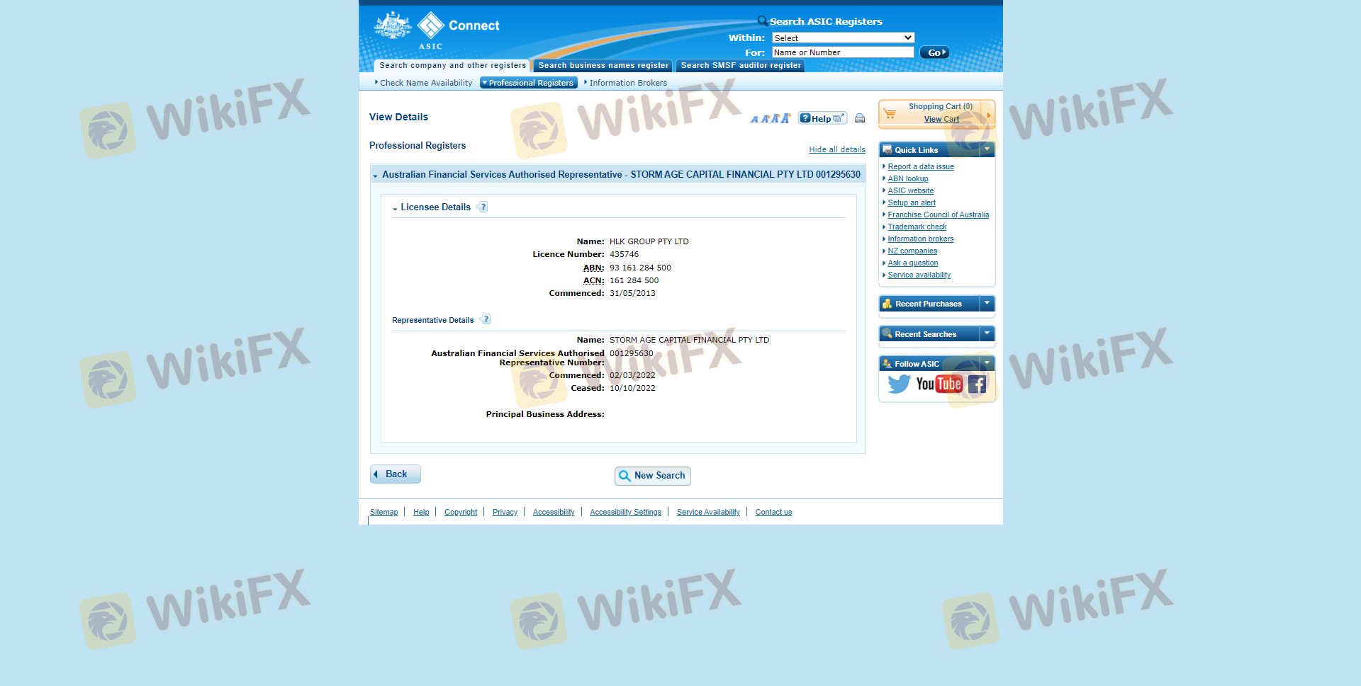 Mengenai legitimasi broker forex STORM AGE CAPITAL, ia menyediakan Australia ASIC, dan .