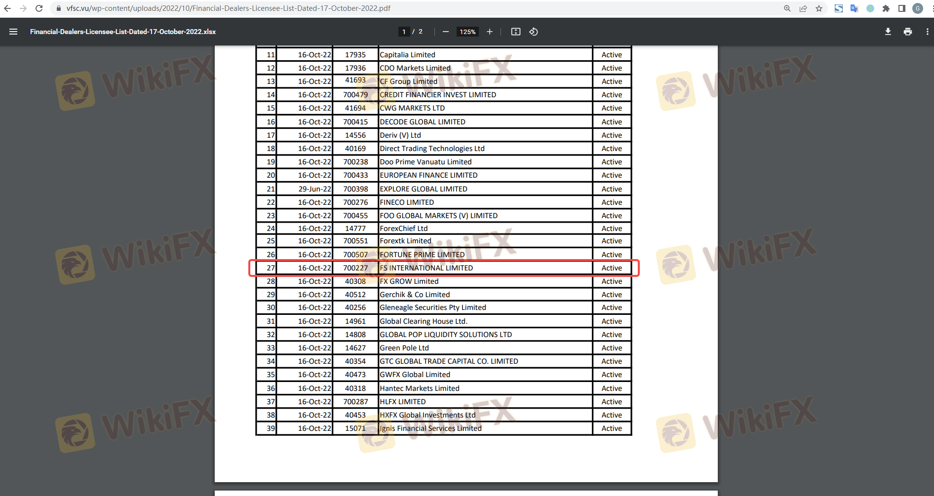 | Vanuatu FSC | Tidak ditentukan | Vanuatu | Terverifikasi |