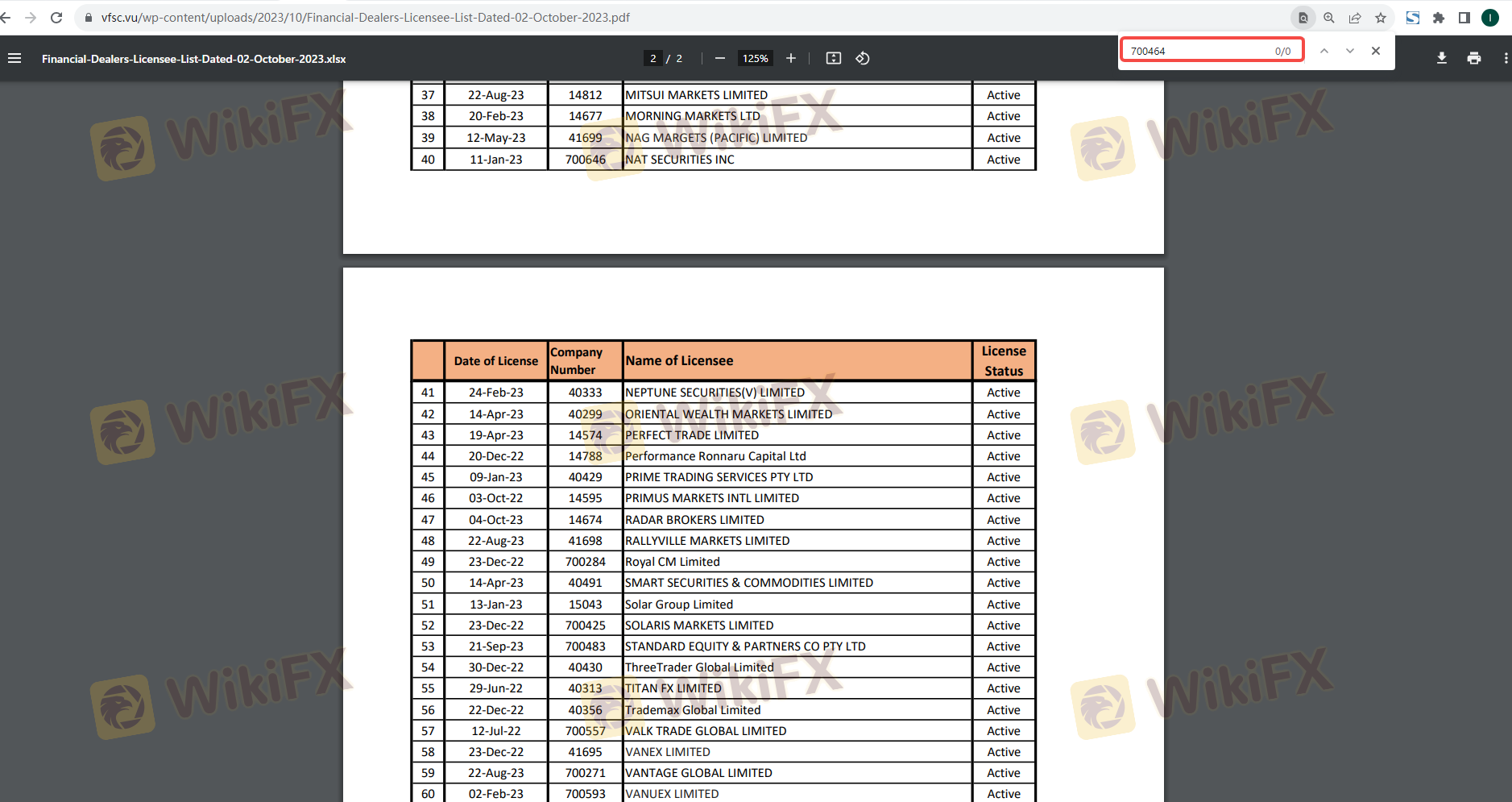 | VFSC | 700464 | Vanuatu | Dicabut |