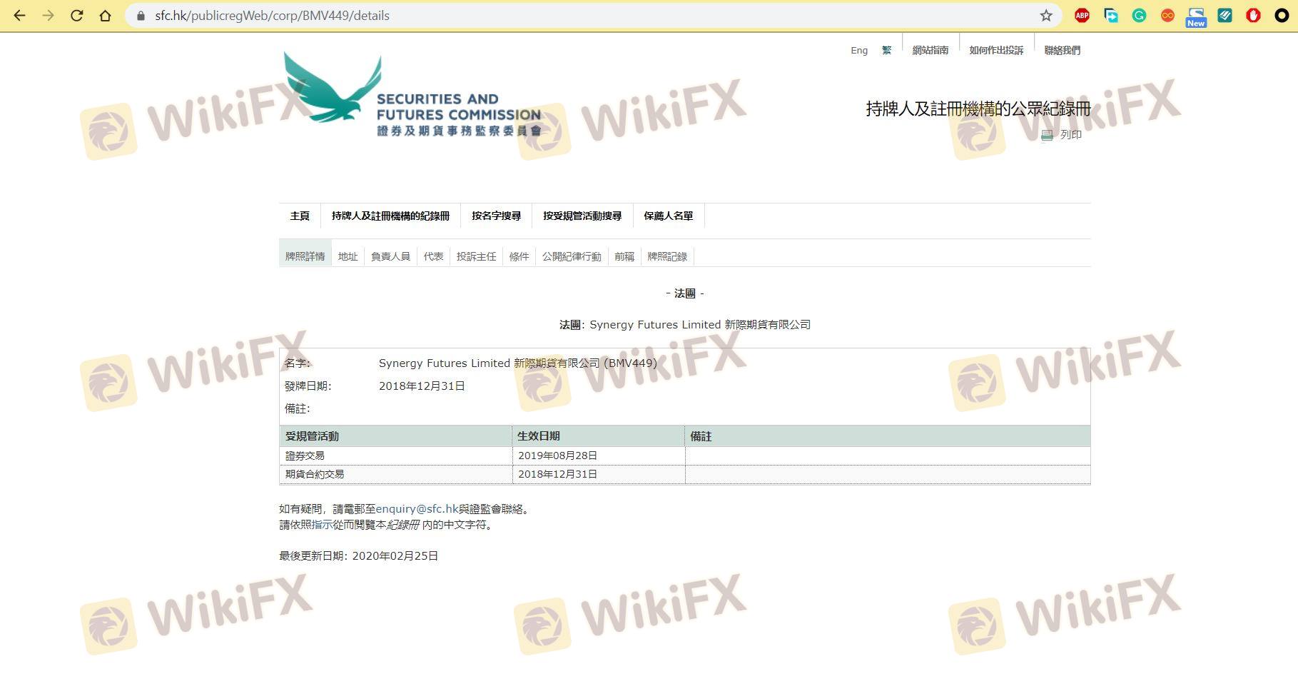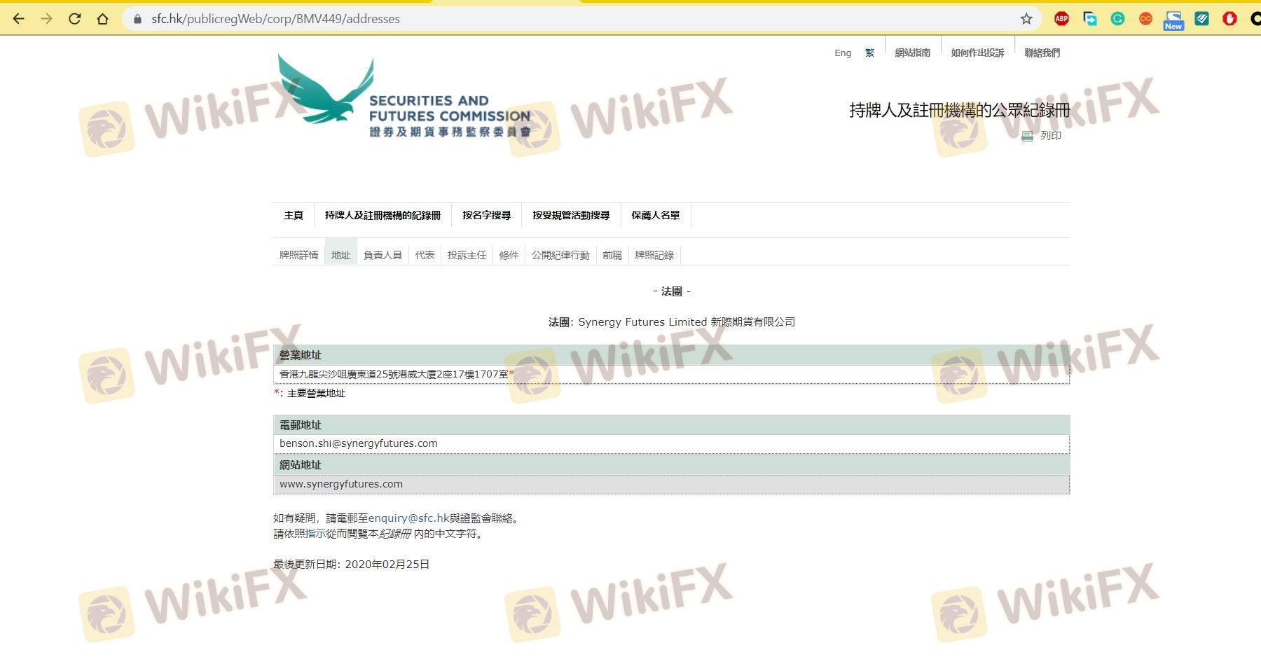 Mengenai legitimasi broker forex Synergy Futures, ia menyediakan Hong Kong SFC, dan (Kami juga melakukan investigasi lapangan terkait aspek keamanan.).