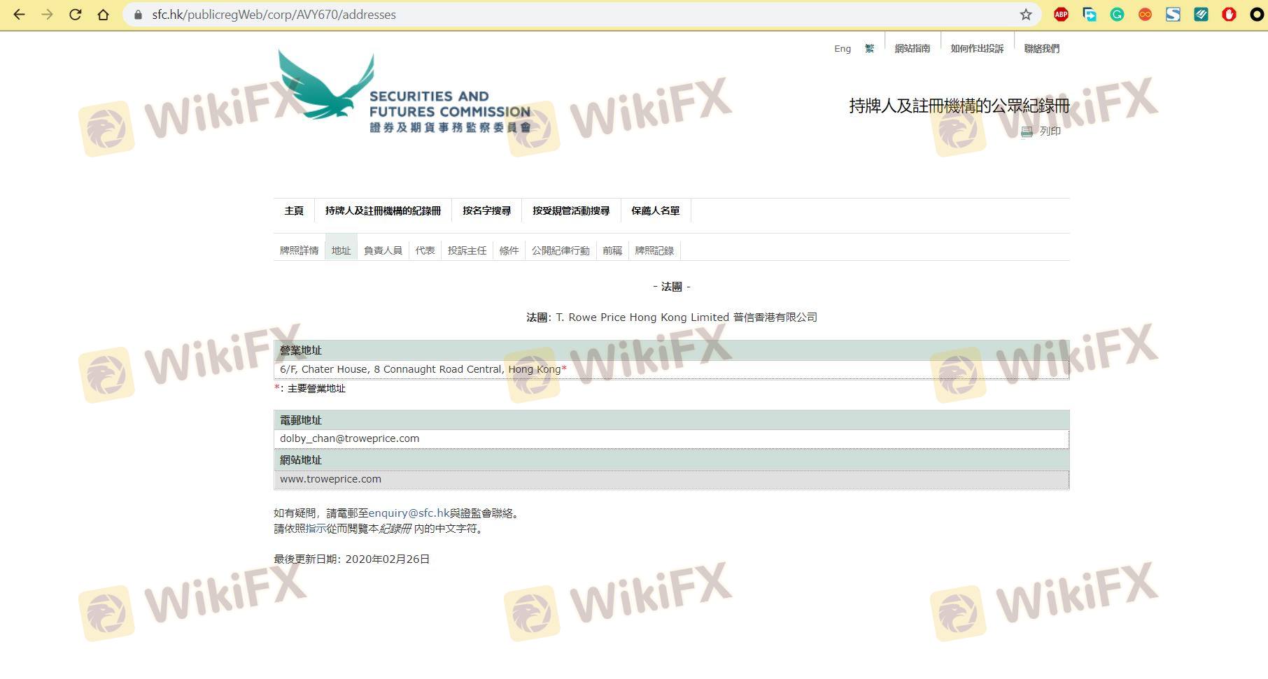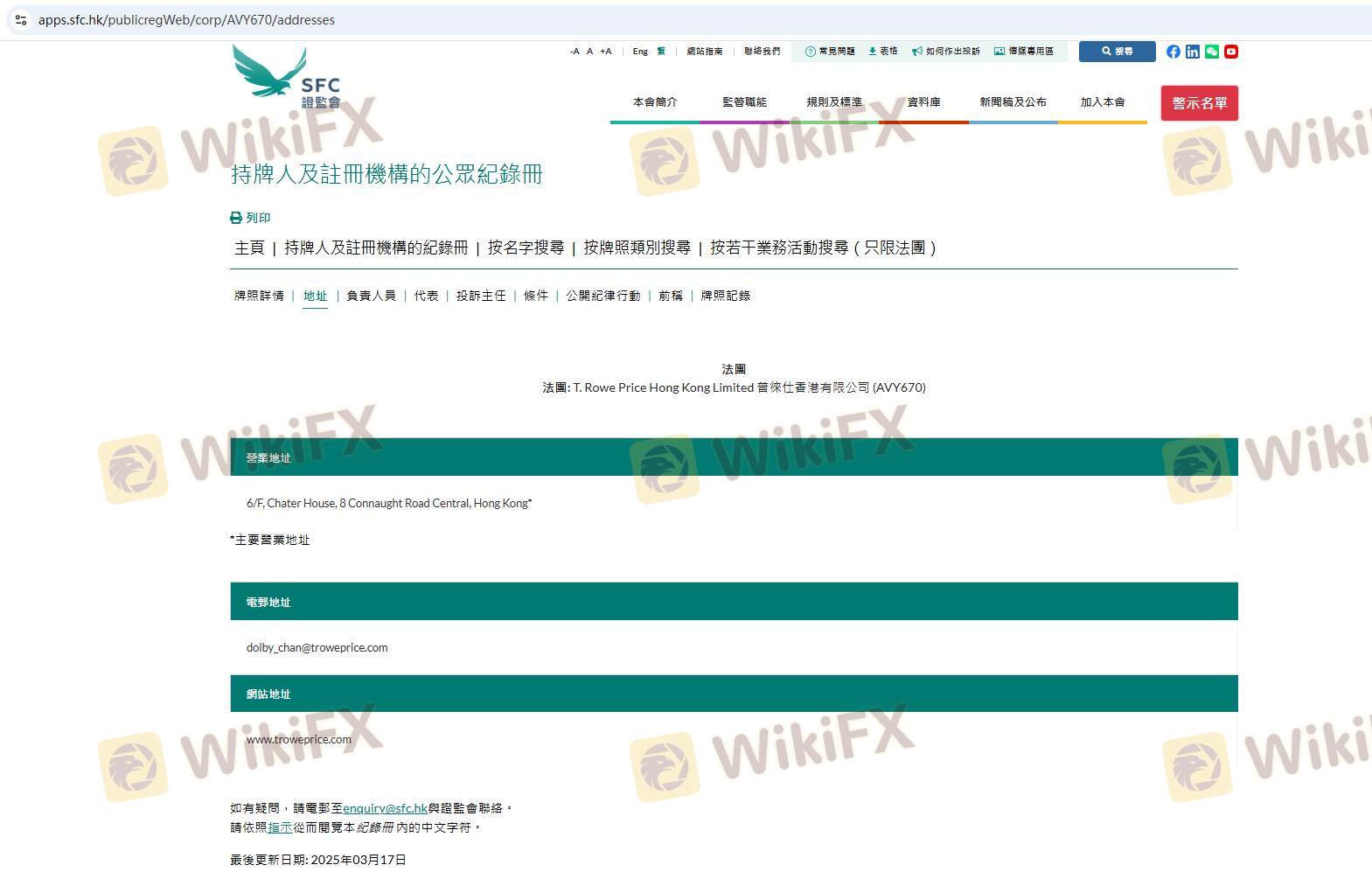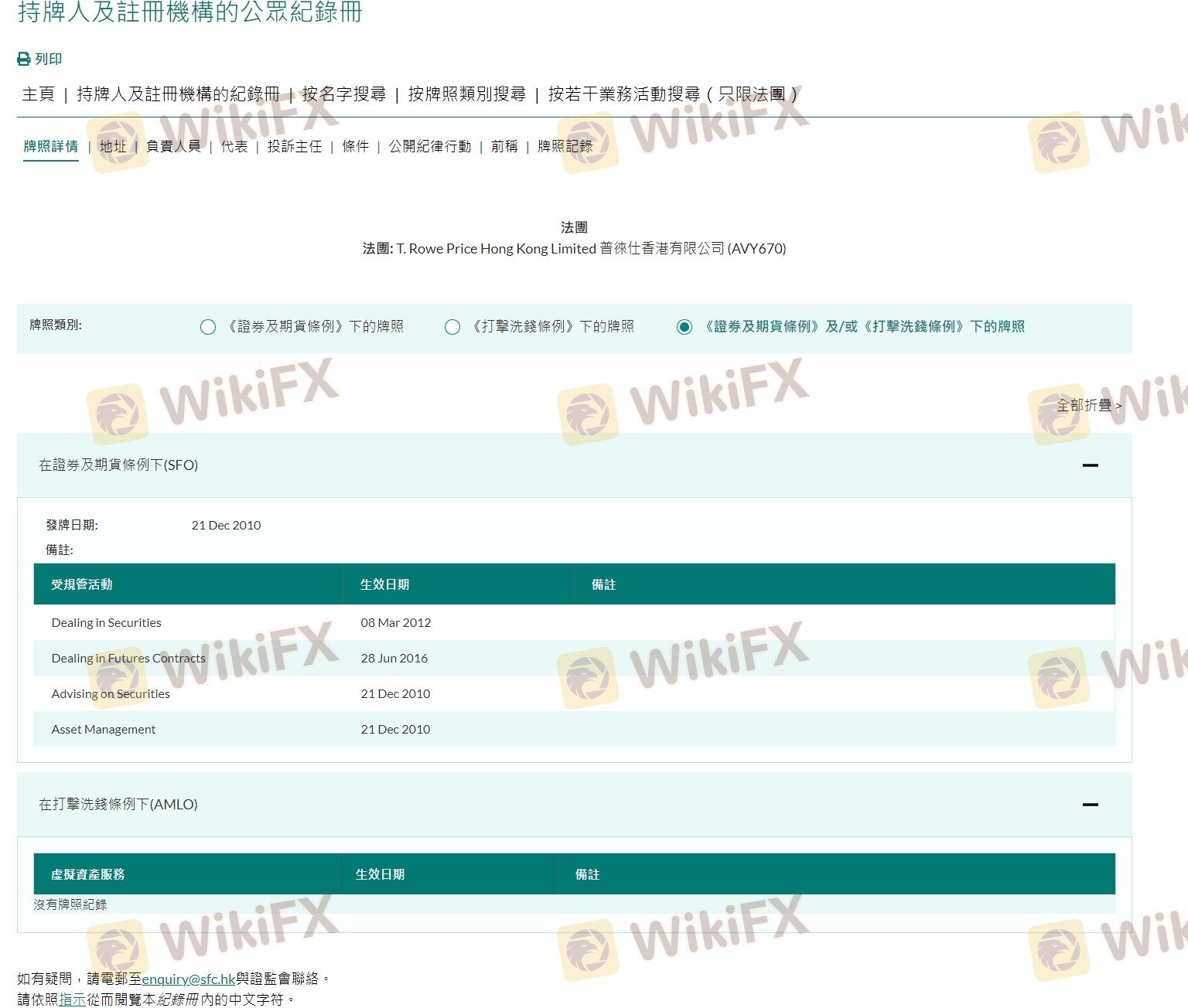 Mengenai legitimasi broker forex T.RowePrice, ia menyediakan Hong Kong SFC, dan (Kami juga melakukan investigasi lapangan terkait aspek keamanan.).