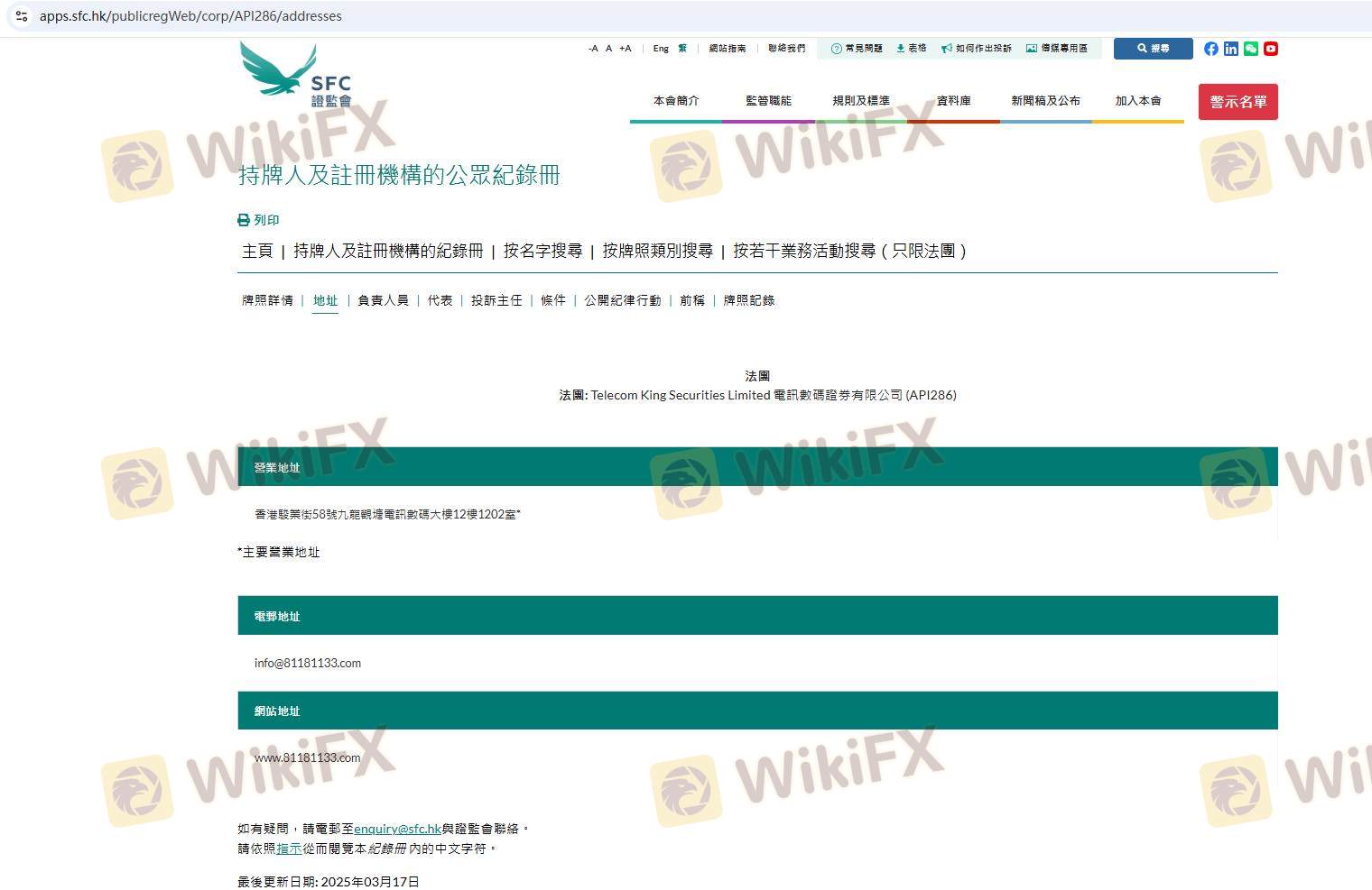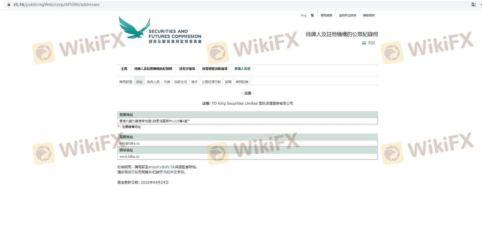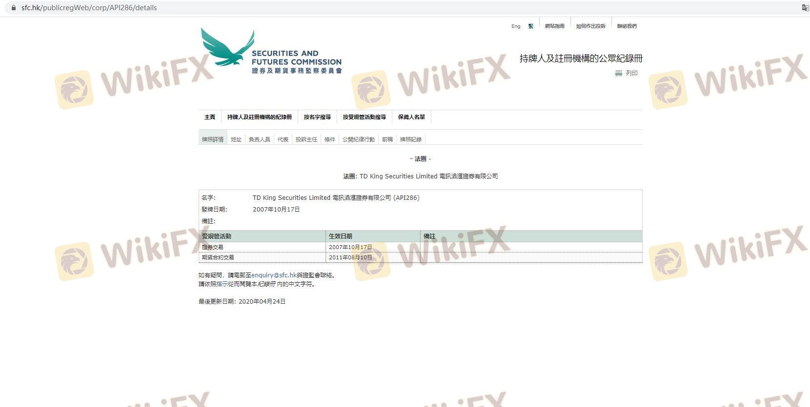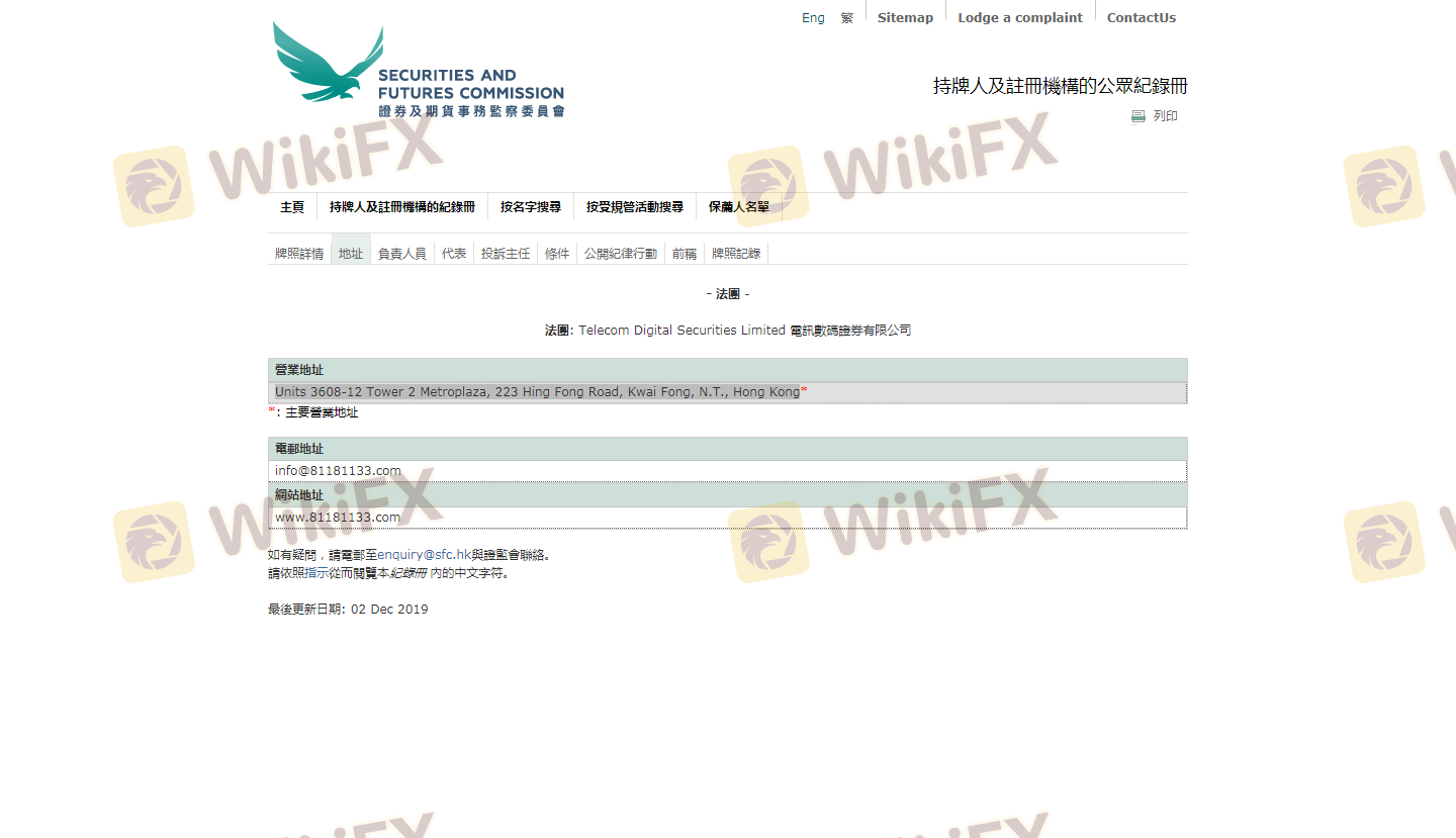 Mengenai legitimasi broker forex Telecom King Securities, ia menyediakan Hong Kong SFC, dan (Kami juga melakukan investigasi lapangan terkait aspek keamanan.).