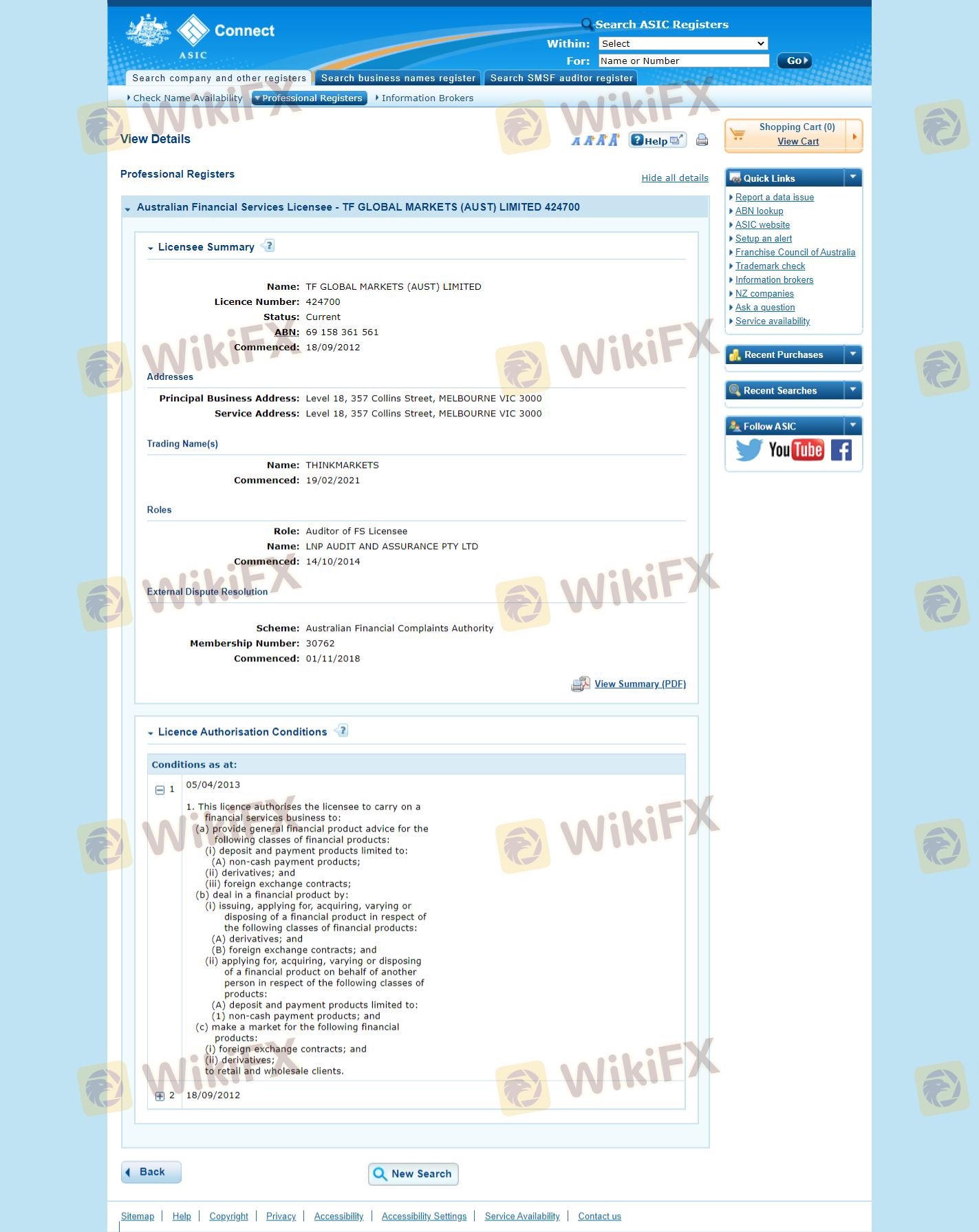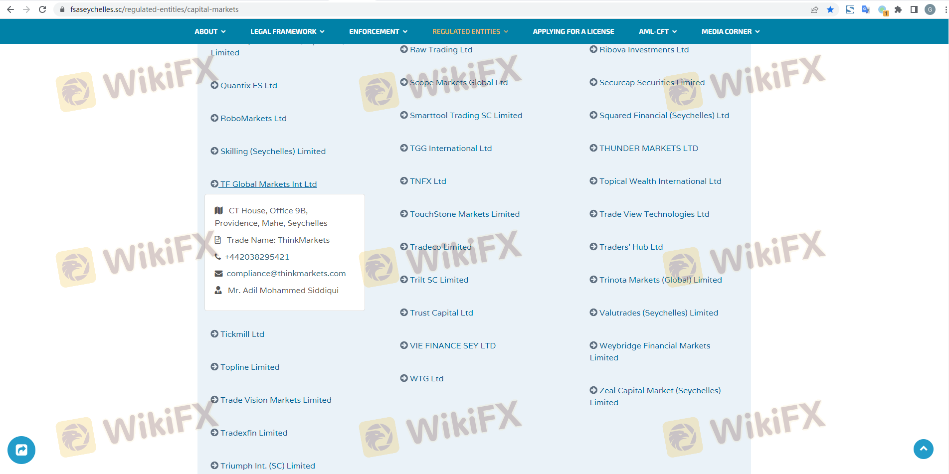 Mengenai legitimasi broker forex ThinkMarkets, ia menyediakan Australia ASIC, Kerajaan Inggris FCA, Siprus CYSEC, Afrika Selatan FSCA, Seychelles FSA, Jepang FSA, dan (Kami juga melakukan investigasi lapangan terkait aspek keamanan.).