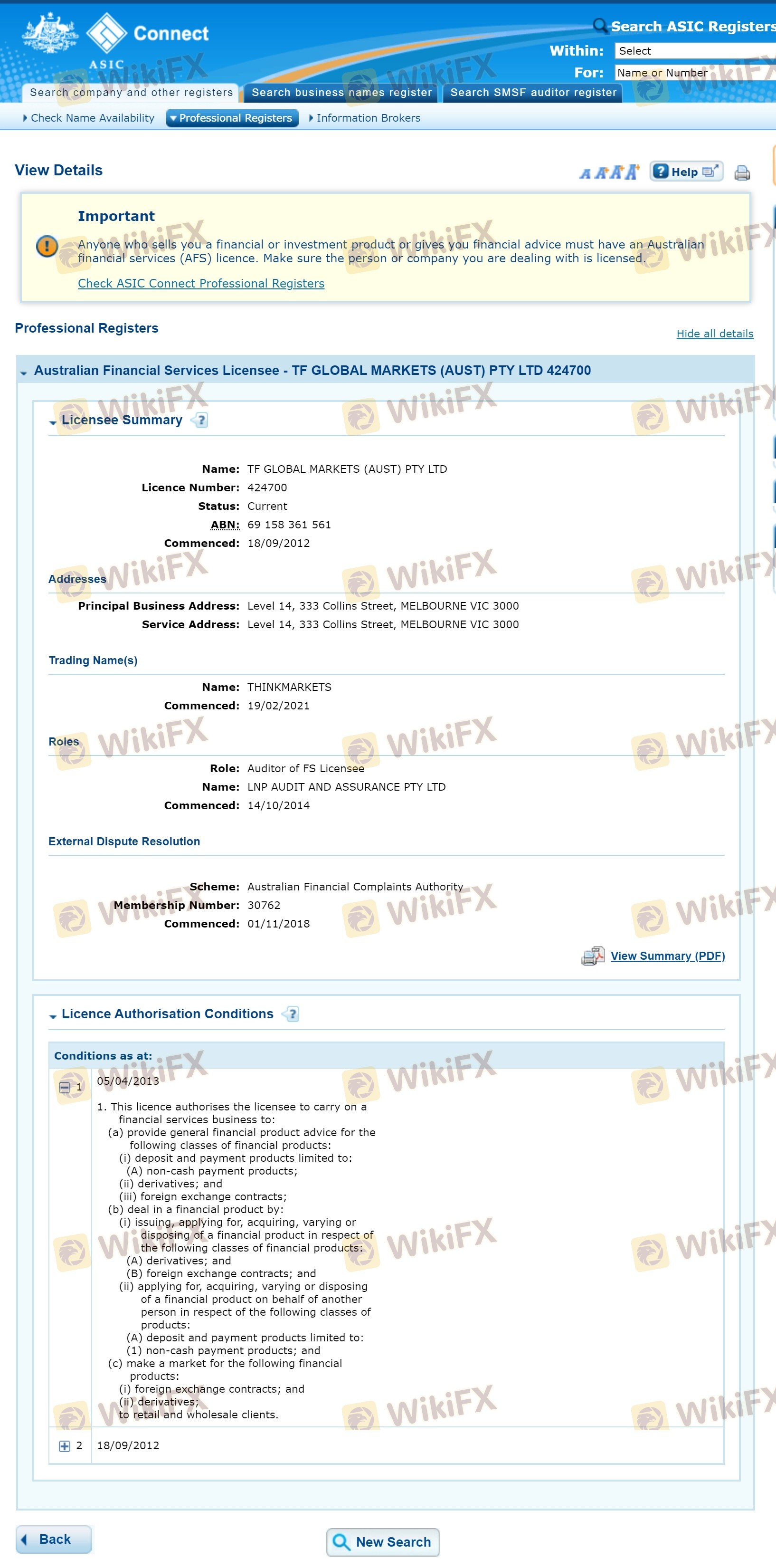 Regulasi adalah faktor kunci dalam menentukan keamanan dan keandalan broker perdagangan. ThinkMarkets diatur oleh beberapa otoritas keuangan tingkat atas, yang menambah kredibilitasnya. Berikut adalah ringkasan informasi regulasi broker: