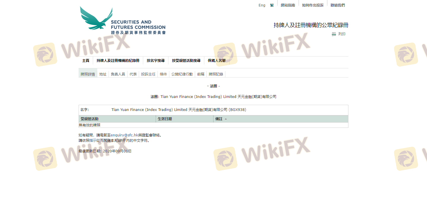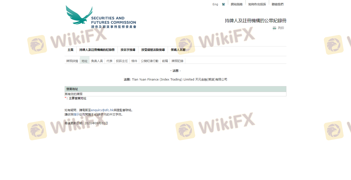 Mengenai legitimasi broker forex Tian Yuan, ia menyediakan Hong Kong SFC, dan .