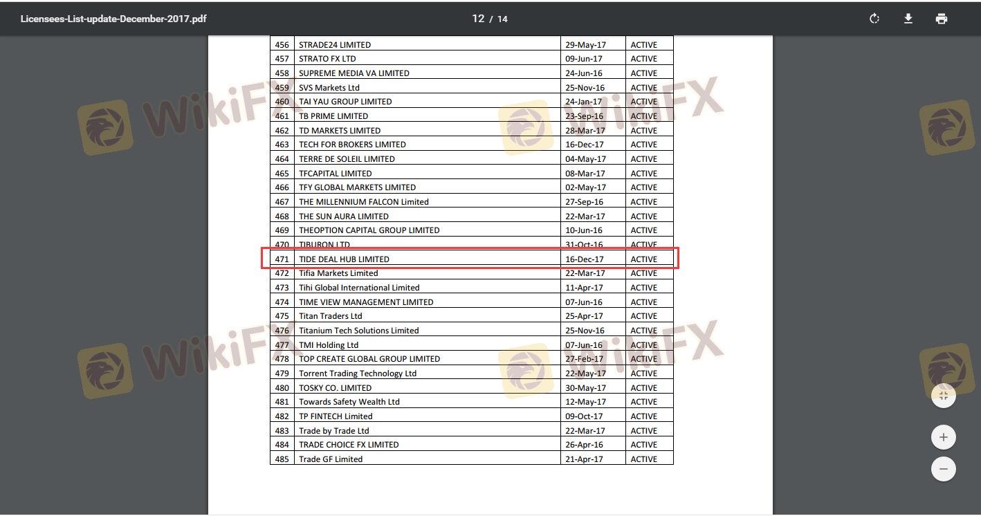 Mengenai legitimasi broker forex TIDE, ia menyediakan Vanuatu VFSC, dan .